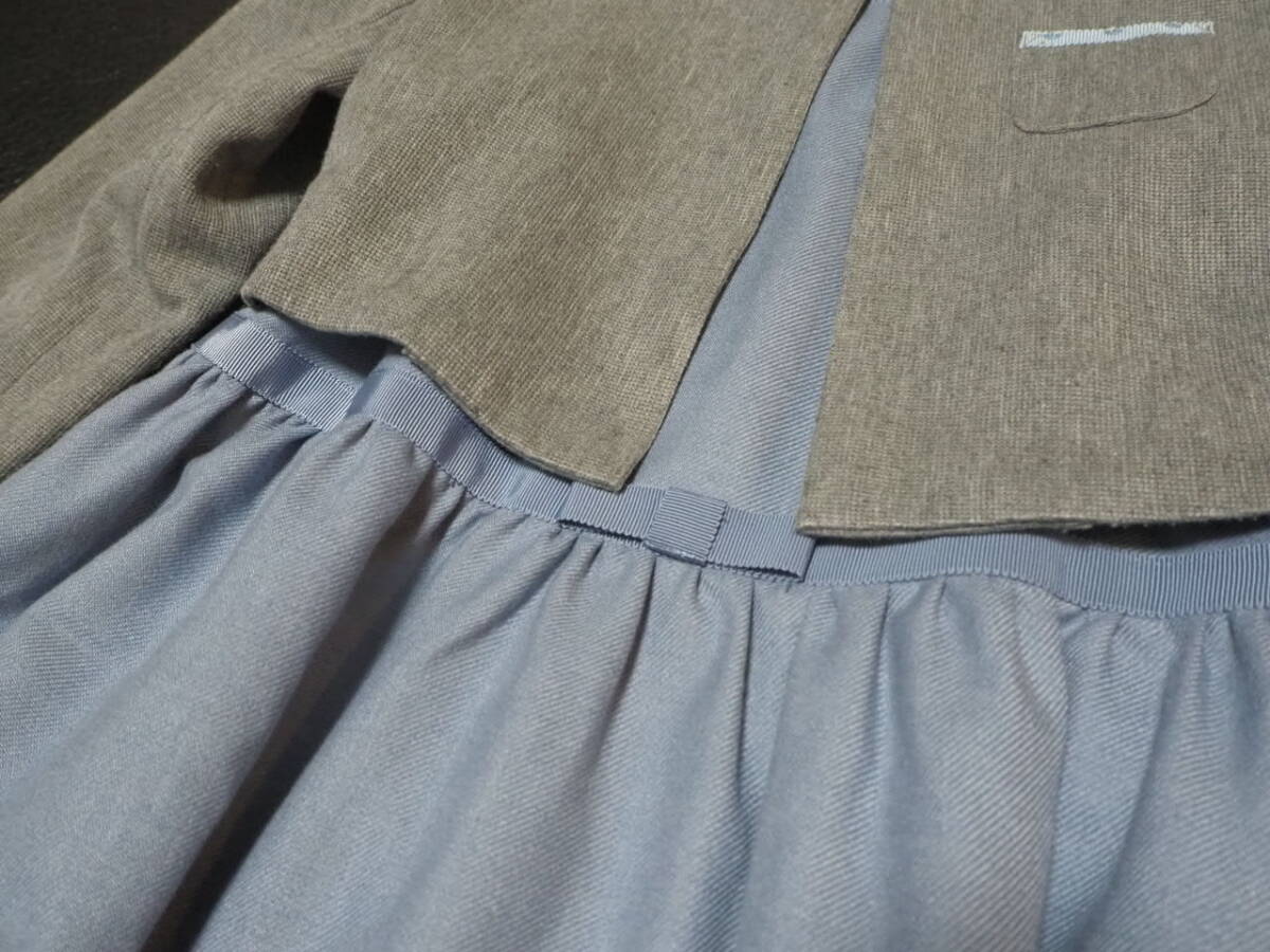 ボレロの胸ポケットにブルーのワンポイントがあり、ブルーのワンピースと揃えて着ていました。