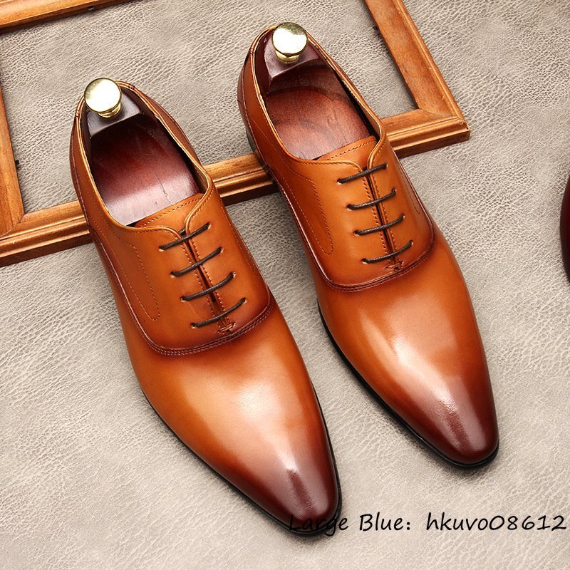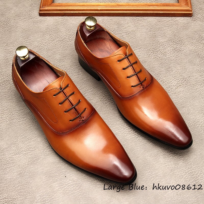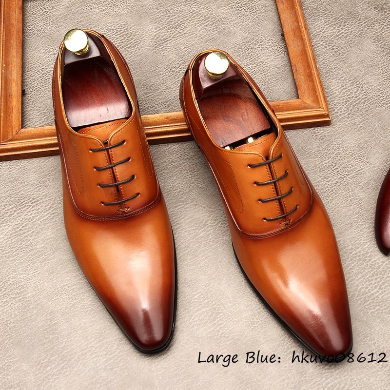 定価11万&人気新品 レザーシューズ 本革 革靴 職人手塗り上げ ビジネスシューズ メンズ 牛革 超希少 紳士靴 冠婚葬祭 新品 ブラウン 24.5cm