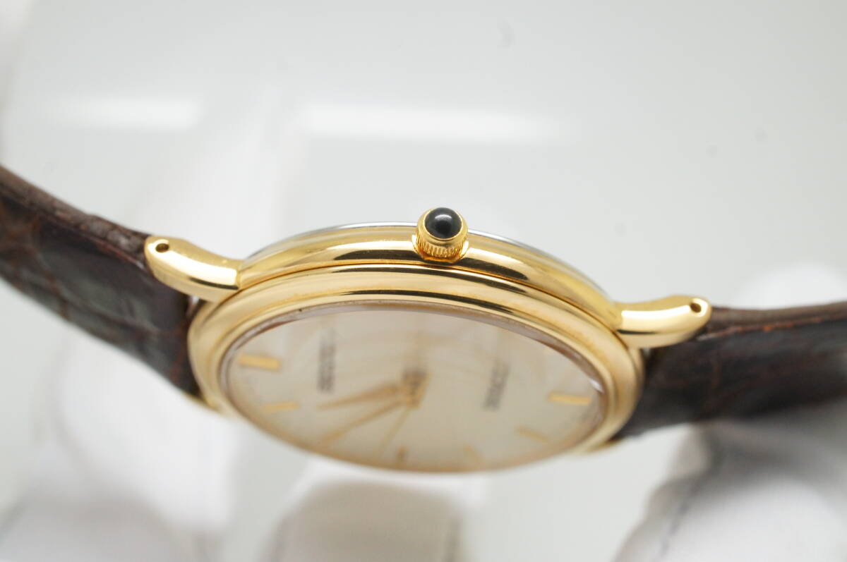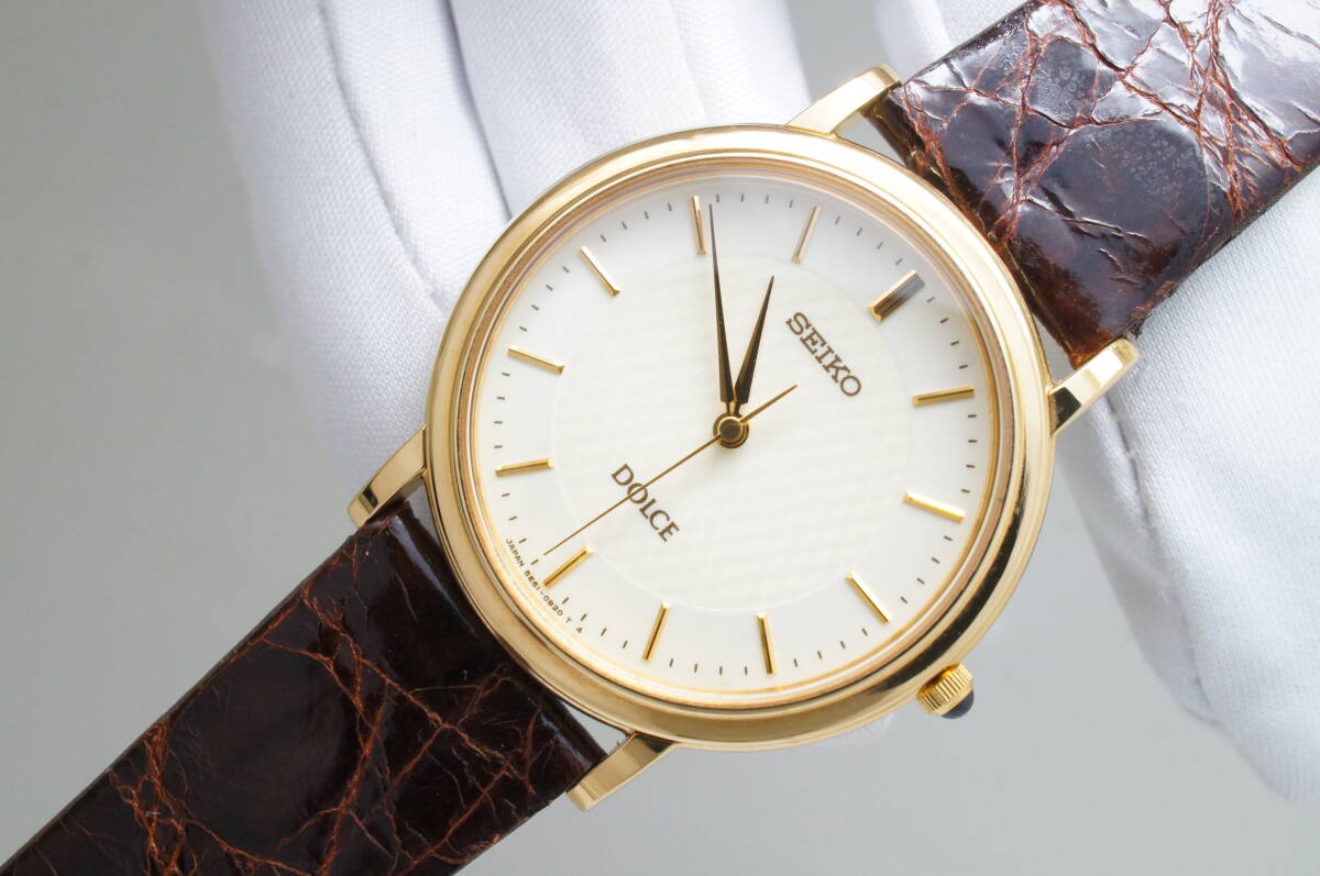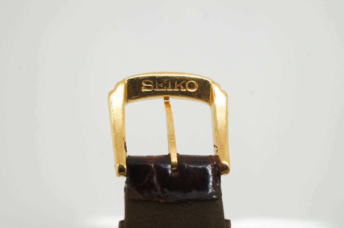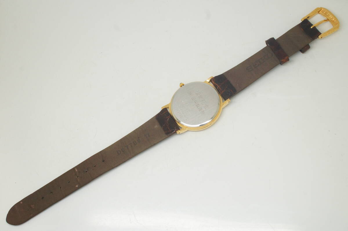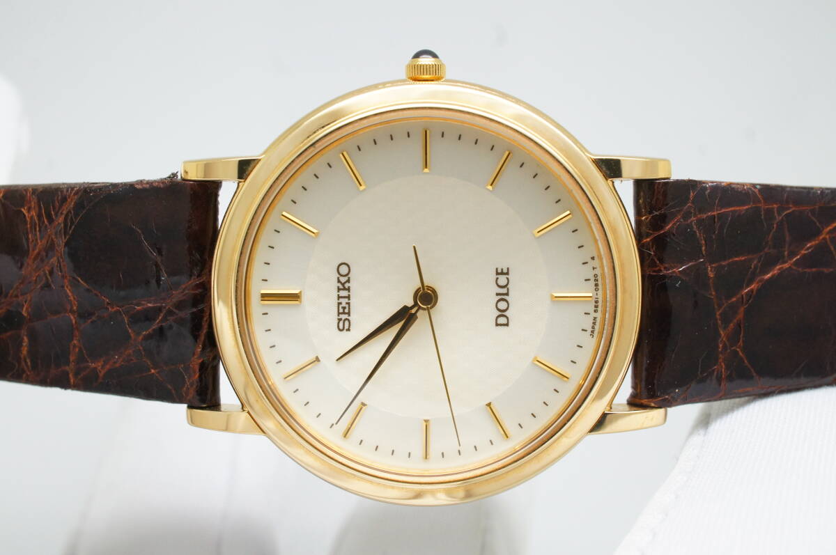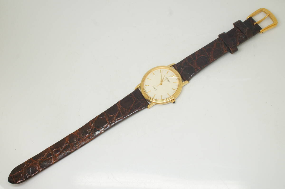 Z111●作動良好 美品 SEIKO セイコー DOLCE ドルチェ 5E61-0A80 2000年製 ラウンド型 純正ベルト尾錠 メンズ腕時計 ゴールド金 クォーツ