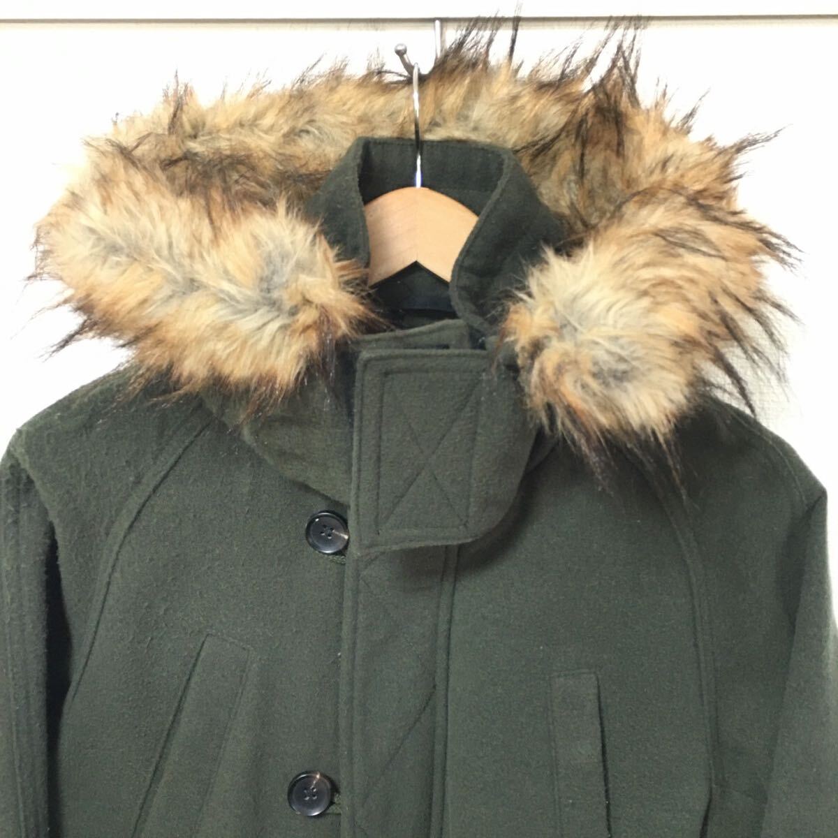 BROWNYのミドル丈コートです。柔らかくしっかりと厚みのある生地感で、ファーの取外しが可能。シンプルで流行り廃りなく着こなし頂けるアウターです。やや毛羽立ちなどの使用感はありますが、目立つダメージやよごれはなくまだまだ着用いただけると思います!