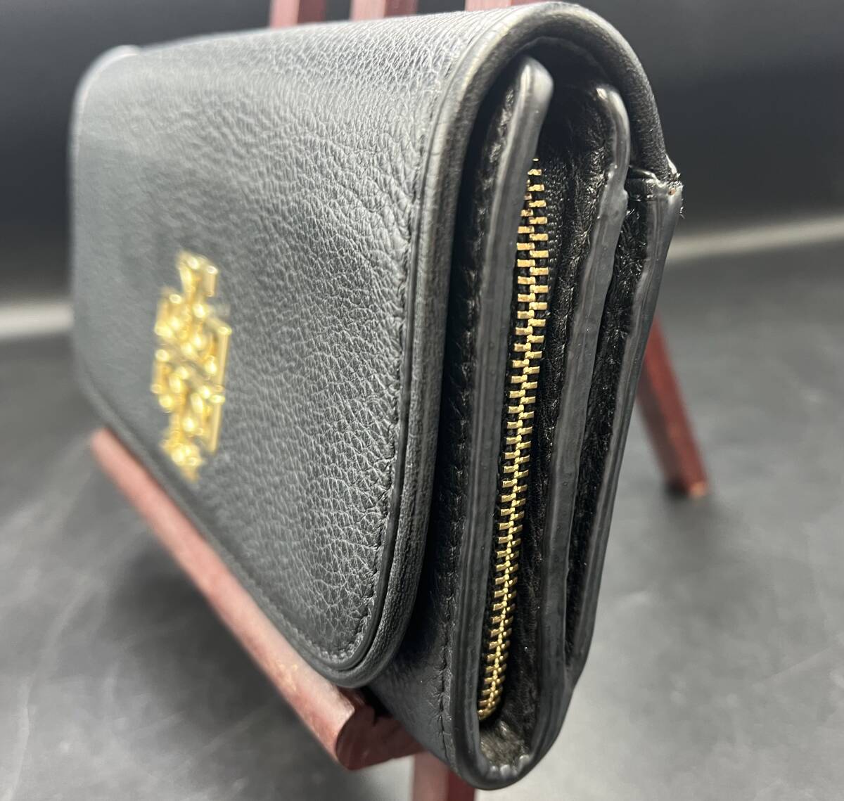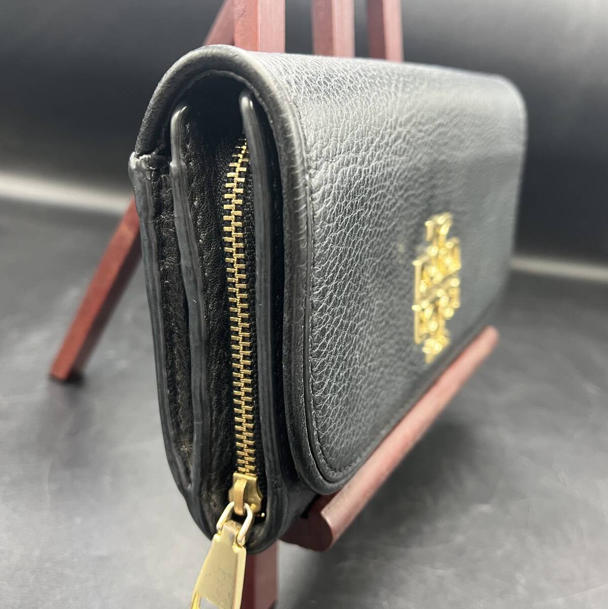 TORY BURCH トリーバーチ ブリテンデュオ エンベロープ コンチネンタル ダブルTロゴ レザー 長財布 二つ折り ブラック ロング 現状品 F2472