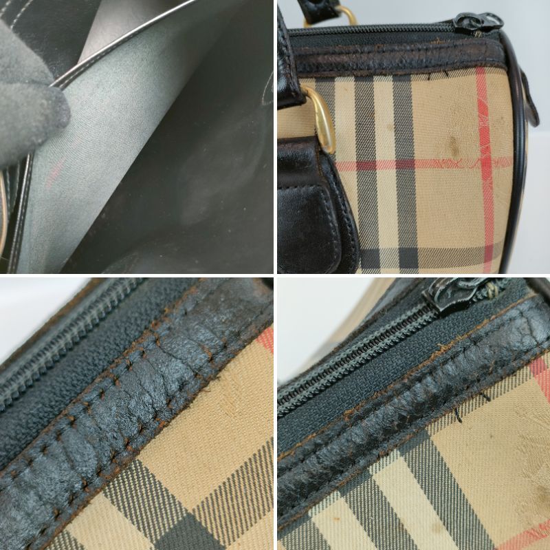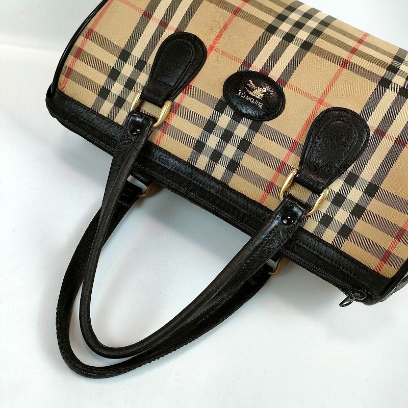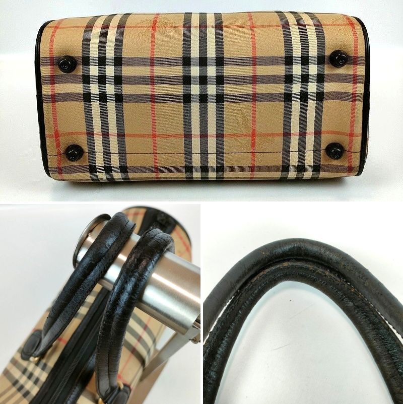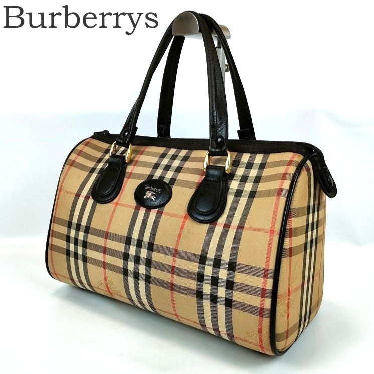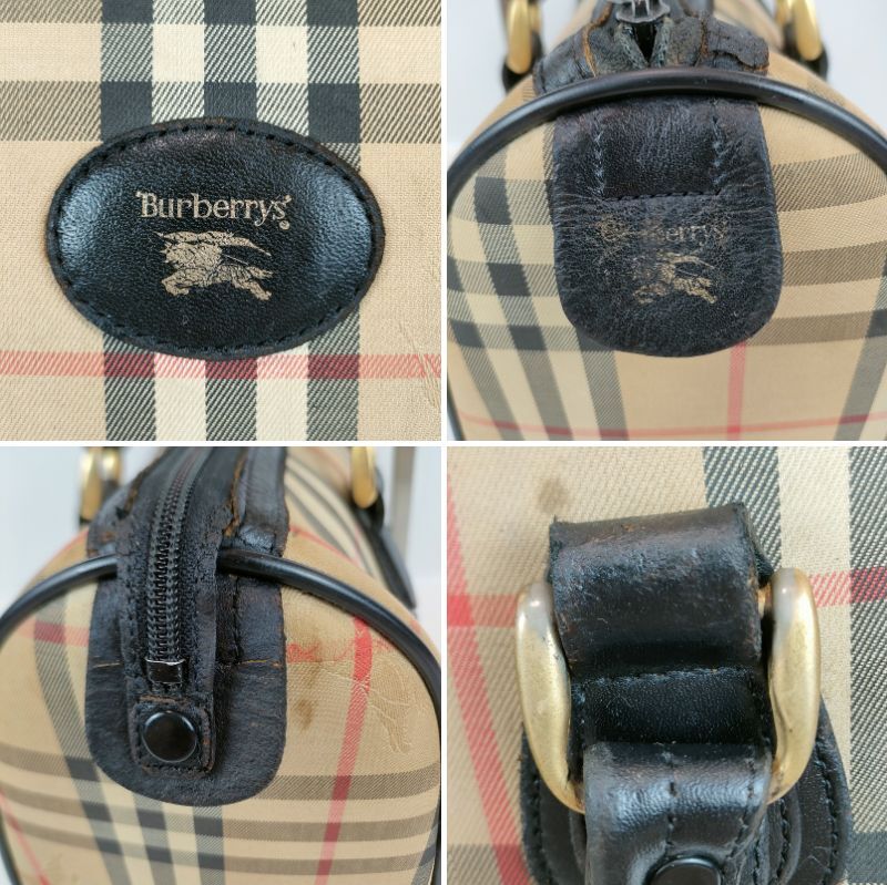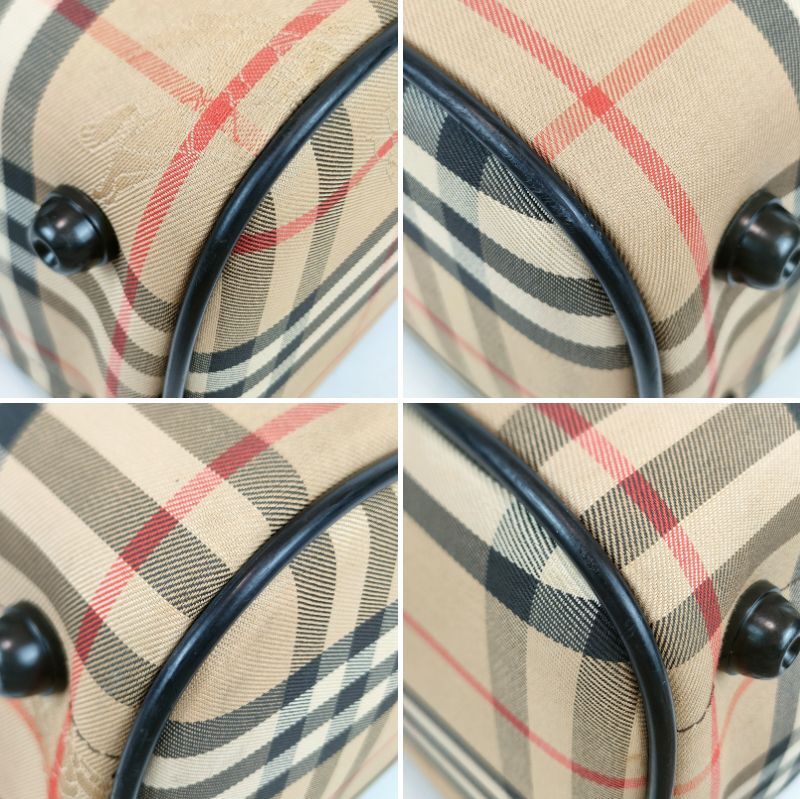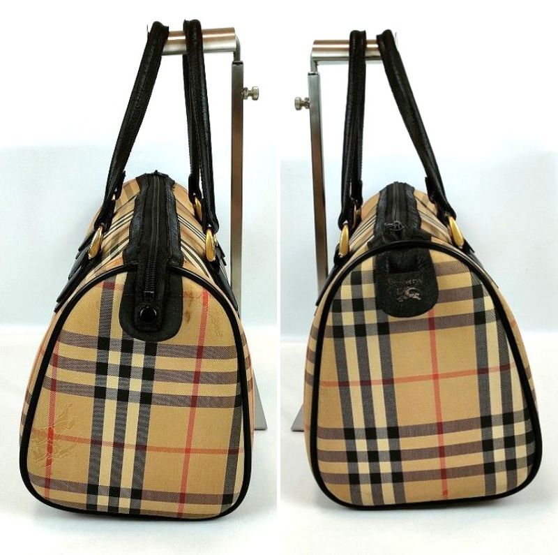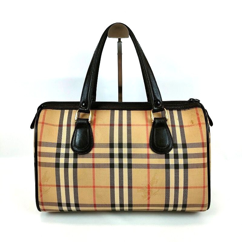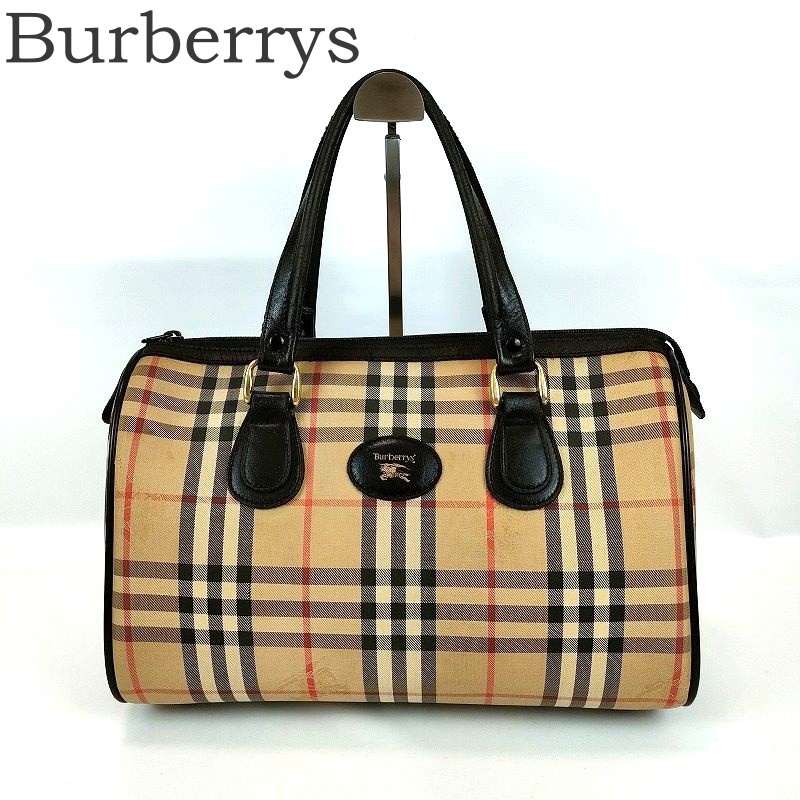 Burberrys バーバリー ノバチェック ボストンバッグ シャドーホース ロゴ ベージュ キャンバス レザー レディース ハンドバッグ 中古