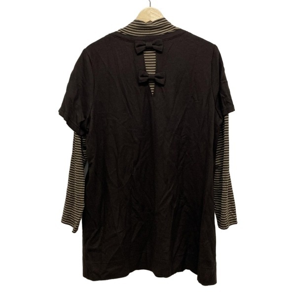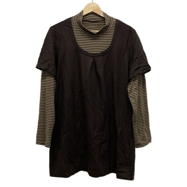 レリアン Leilian チュニック サイズ17+ XL - ダークブラウン×グレーベージュ レディース ハイネック/長袖/ボーダー/リボン ワンピース