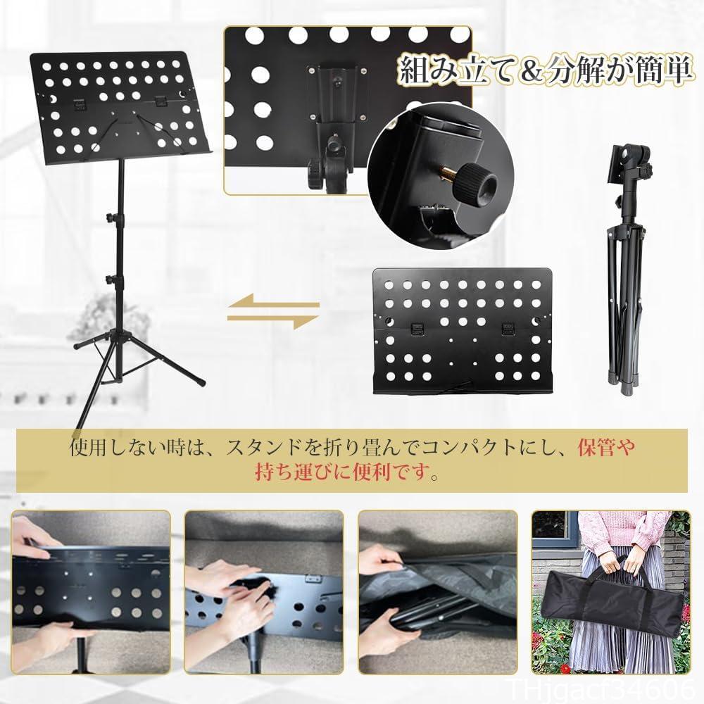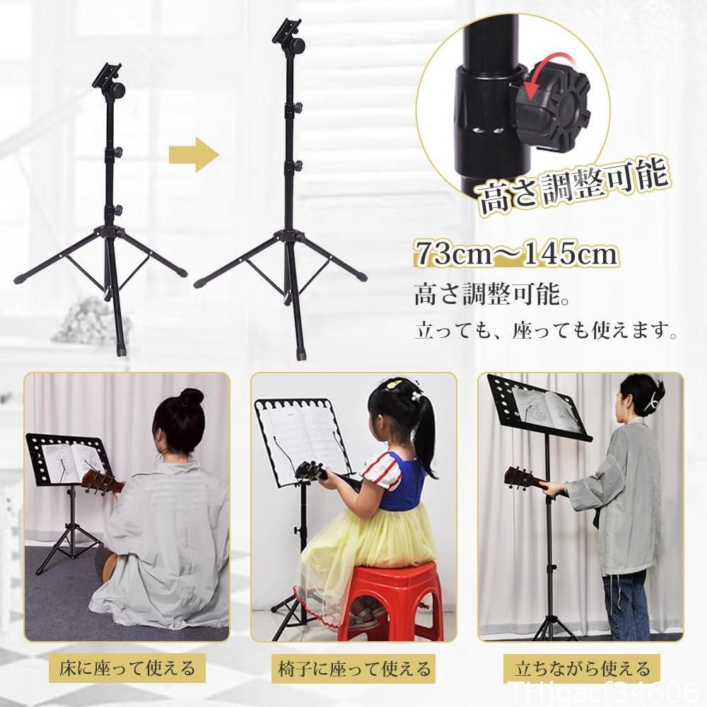 譜面台 折りたたみ式 楽譜たて 楽譜スタンド 73~145cm調節可能 楽譜クリップ付き 三脚 デスクトップスタンド ブックスタン