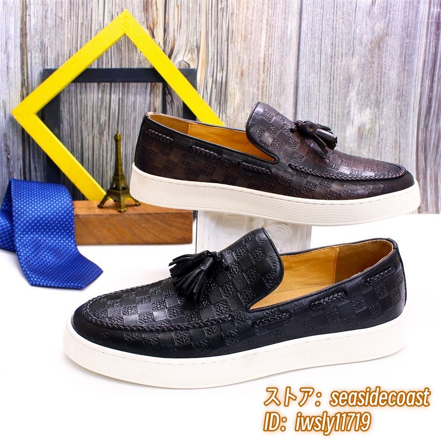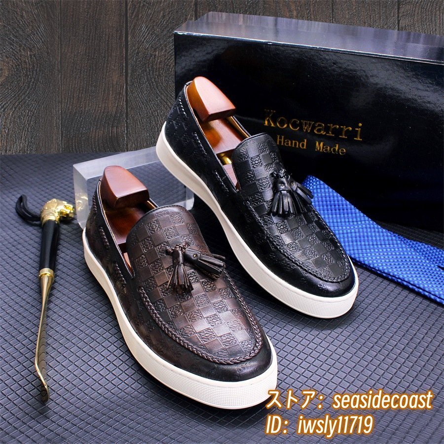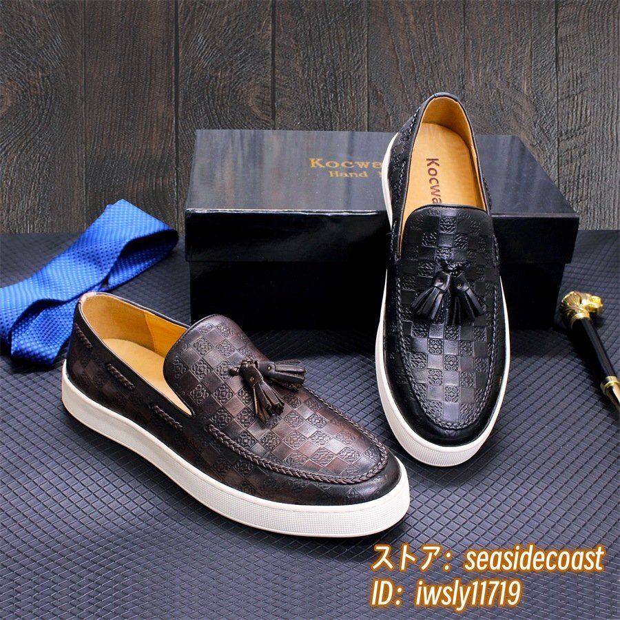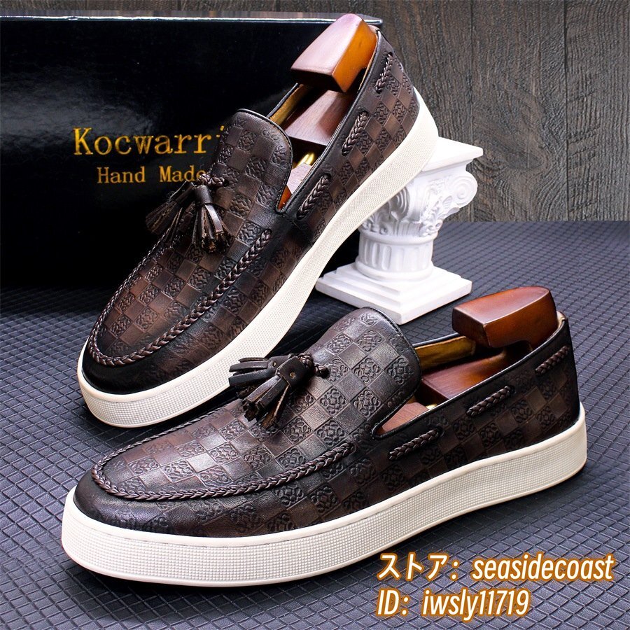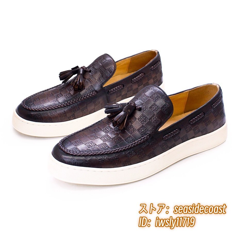 定価7万◆最高級 ビジネスシューズ 本革 ローファー スリッポン メンズ 職人手作り レザーシューズ ドライビングシューズ 珈琲色 25.5cm