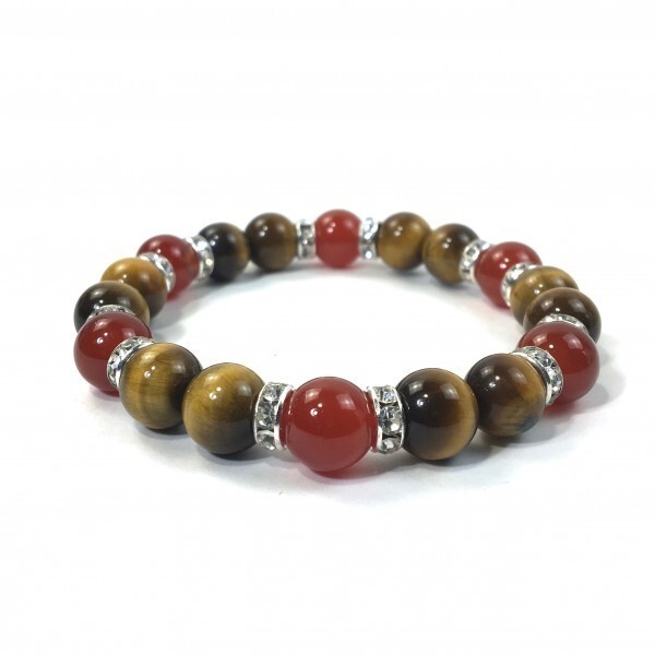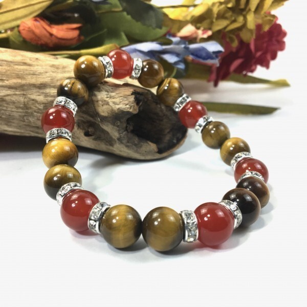 タイガーアイ×赤瑪瑙 パワーストーン ブレスレット 天然石ブレス (シルバー) 10mm メンズ・レディース 金運 仕事運 願望成就