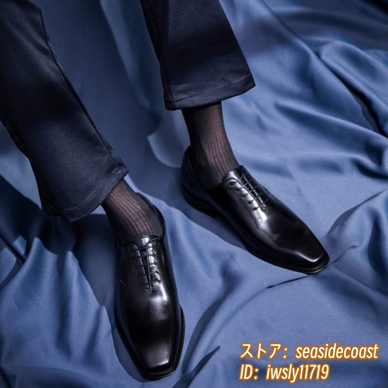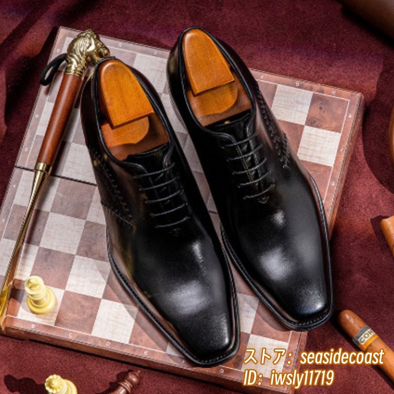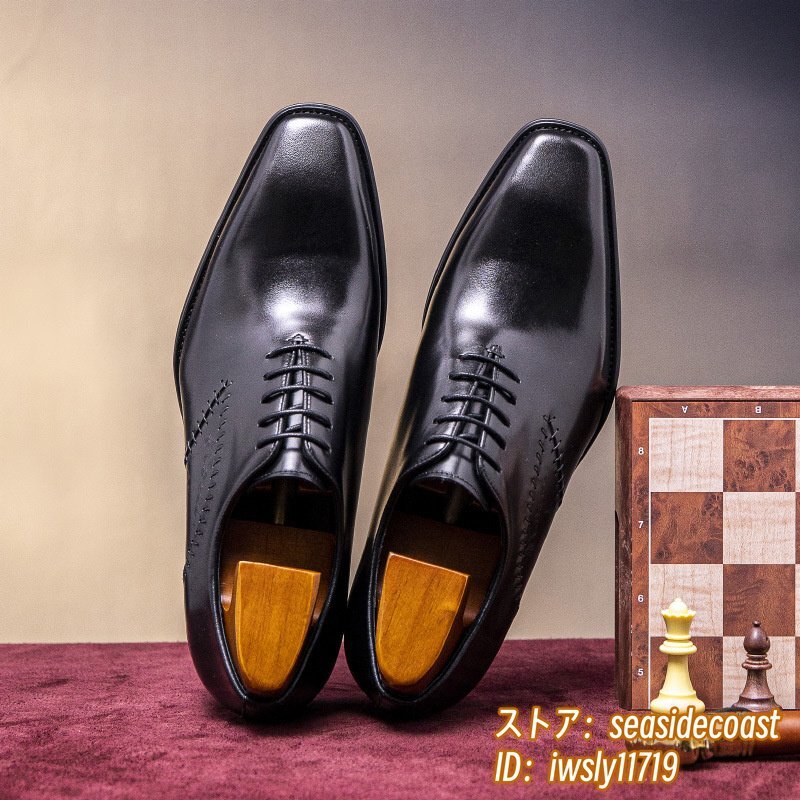 最高級★定価9万超 メンズ ビジネスシューズ 革靴 本革 レザーシューズ 職人手作り 個性 超希少 紳士靴 牛革 フォーマル ブラック 25.0cm