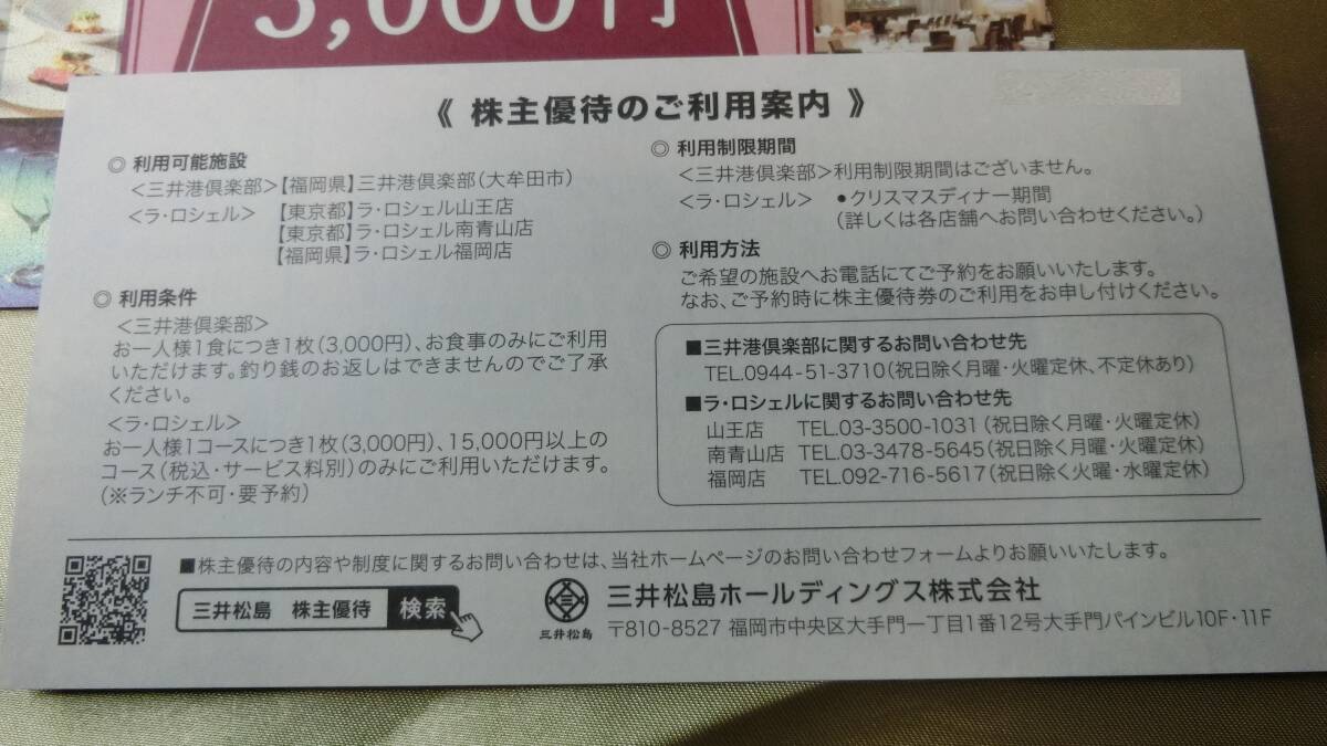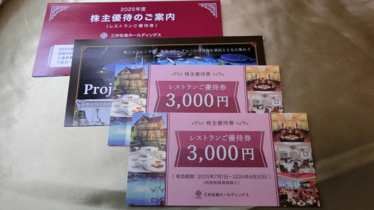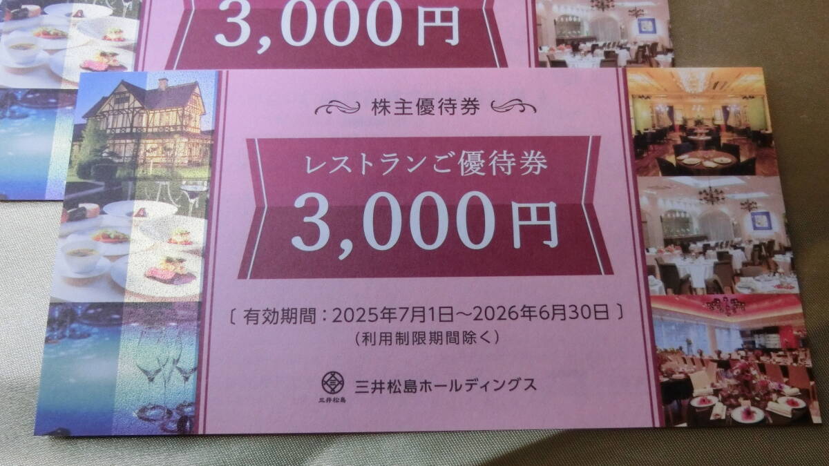 株主優待 三井松島HD 株主優待券  レストランご優待券 3000円 2枚