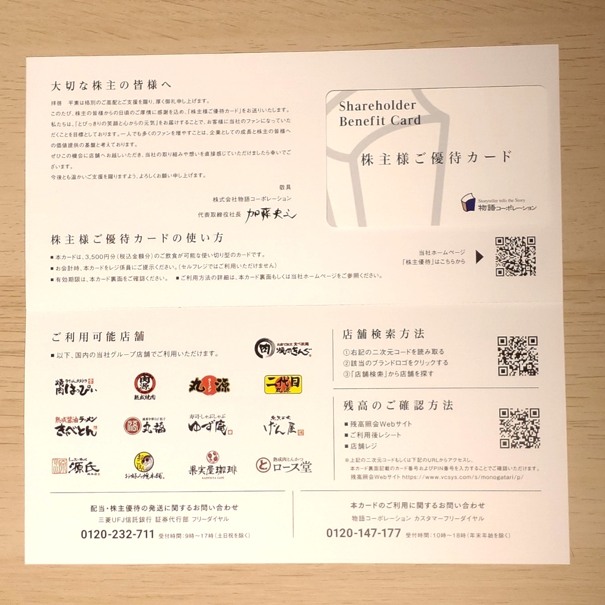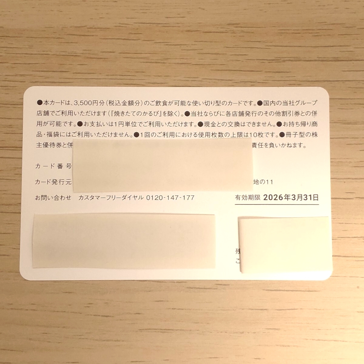 物語コーポレーション 株主優待券 3500円相当 未使用 期限2026年3月