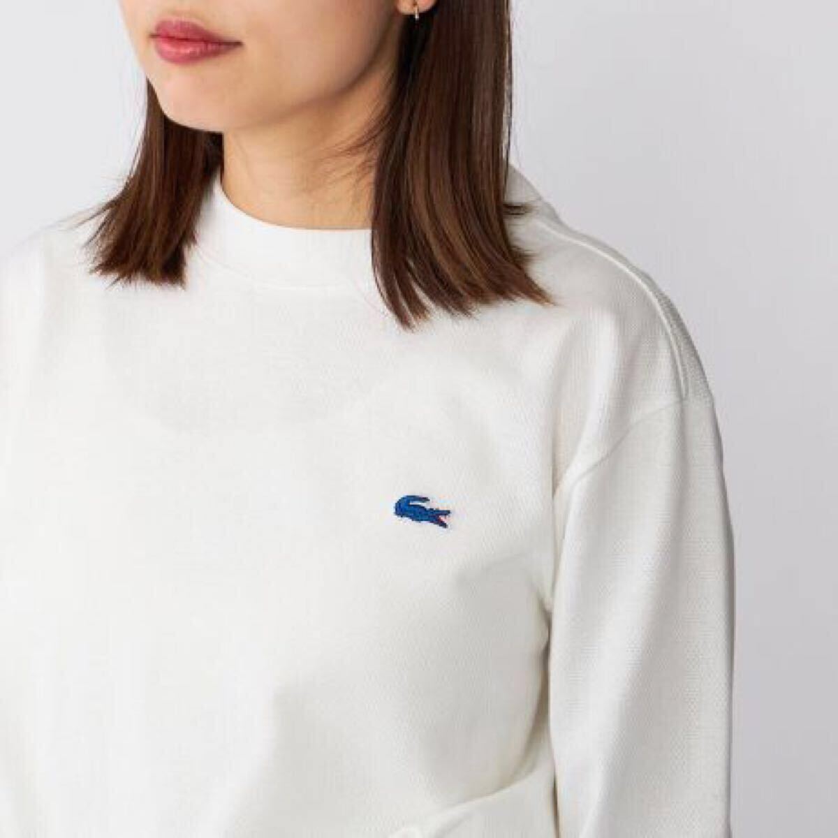 デザインはLACOSTEの歴史が記載されている”LACOSTE the legend”にバスクシャツを着た女性が広告に映っており、そちらをヒントにモダンに表現しました。