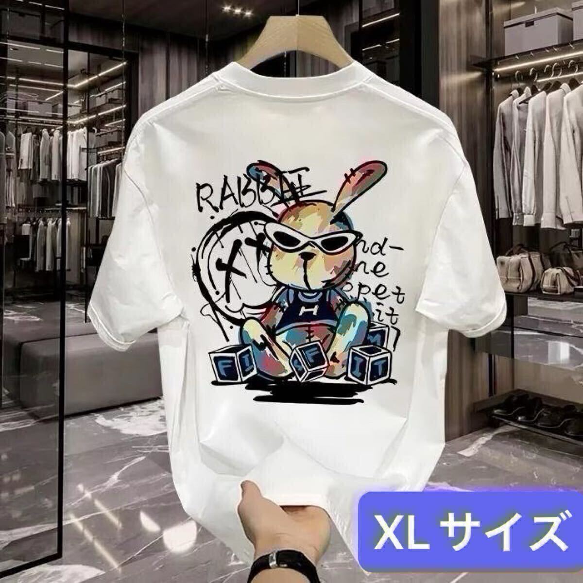 メンズ Tシャツ 半袖 夏服 トップス 男女兼用 ロゴ ホワイト XL