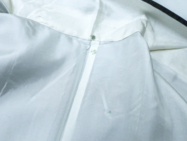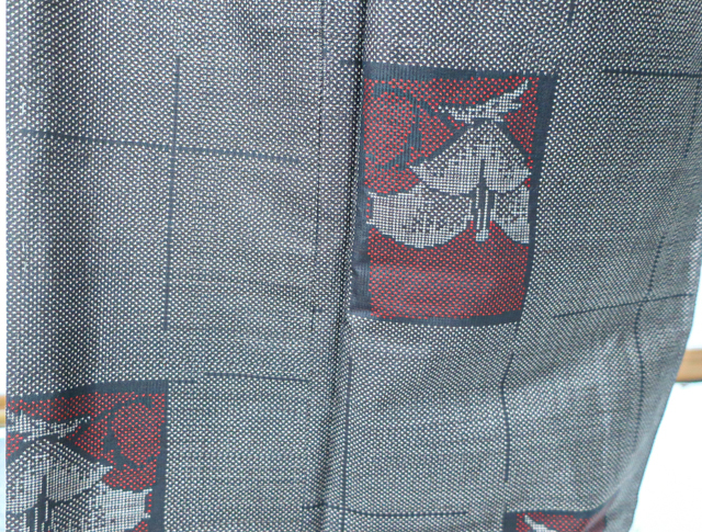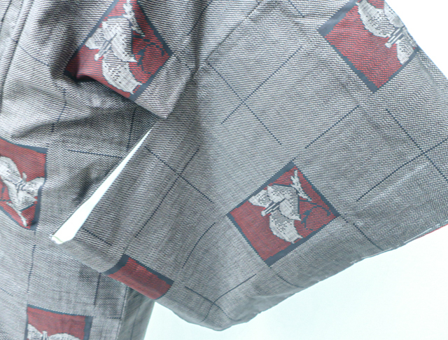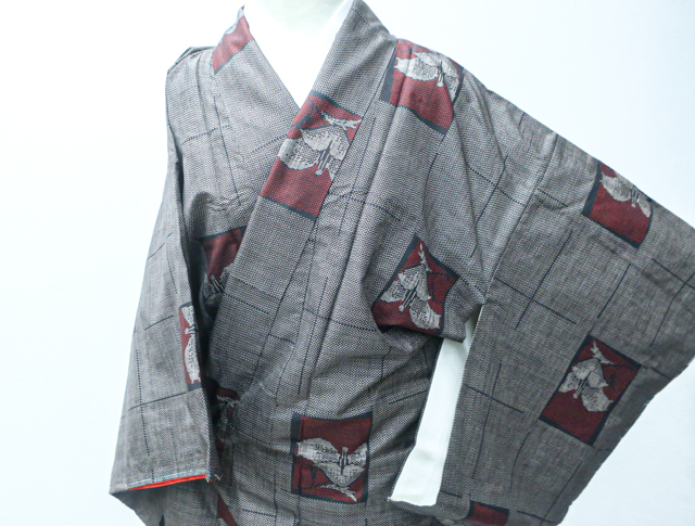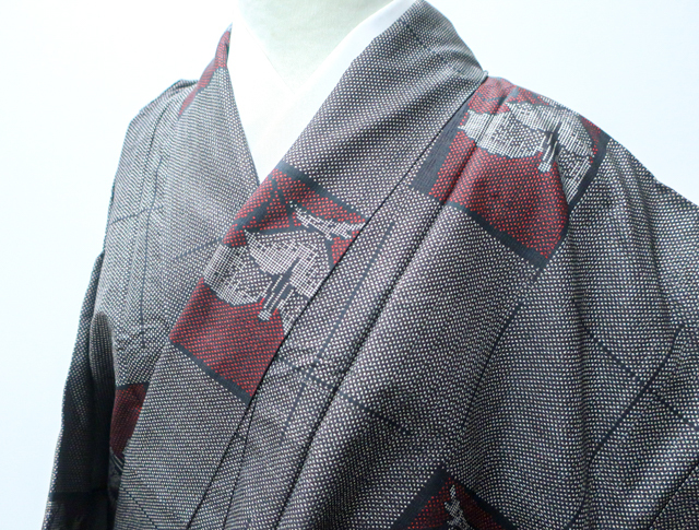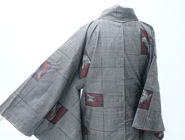 リサイクル商品のため、胴裏・衿裏にスナップボタンによる汚れがございますが着用可能なお品です。 地色は、チャコールグレーです。 1枚目の画像が近いお色かと思われます。 素材は正絹です。 |