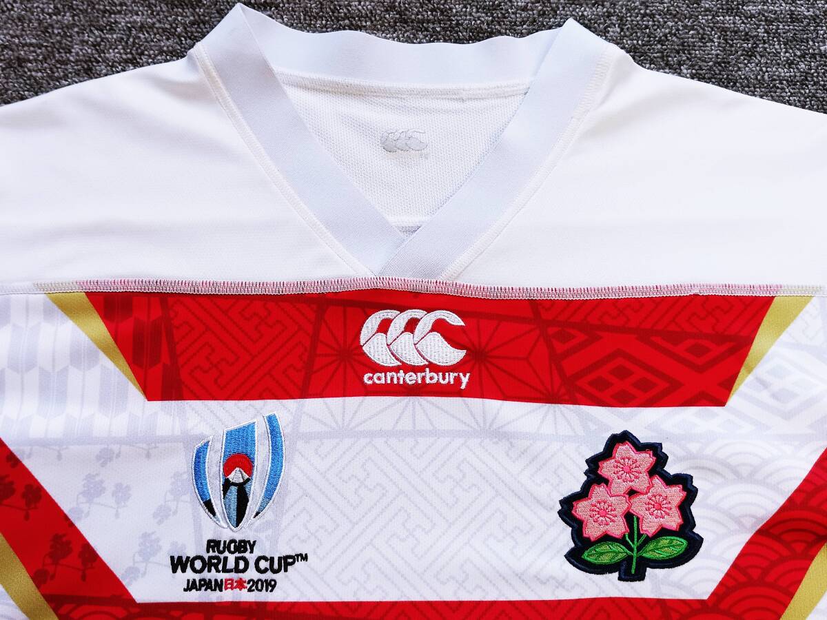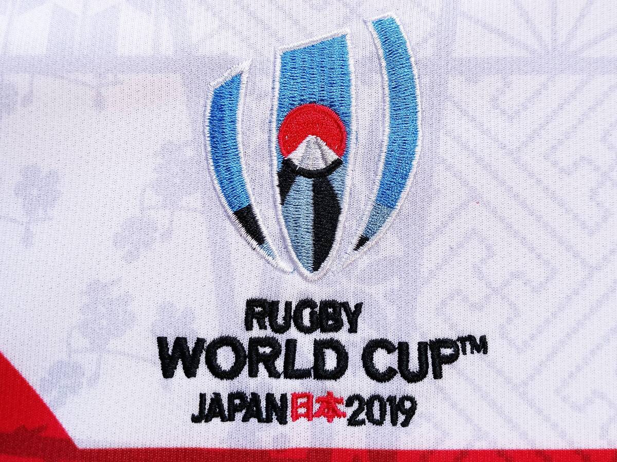 右胸に「2019ラグビーワールドカップ」のエンブレムが刺繍されています。