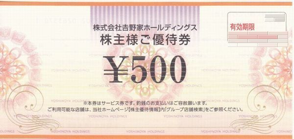 吉野家ホールディングス株主優待券(500円×4枚)です、2000円分 全国の吉野家ホールディングスグループ各社で使用出来ます。
