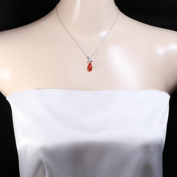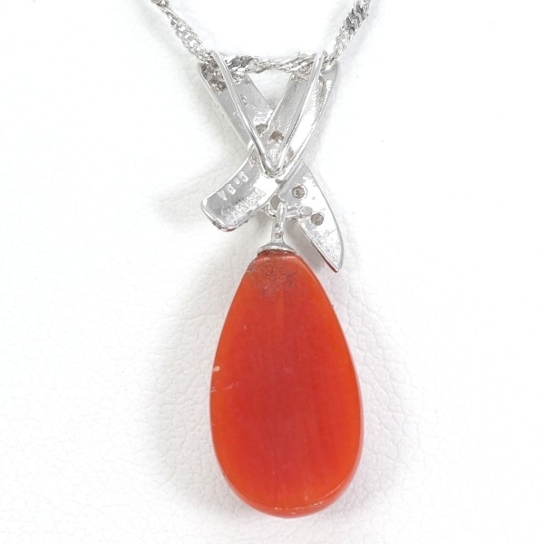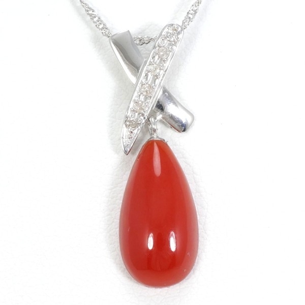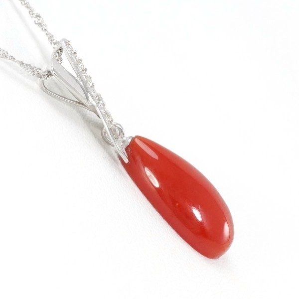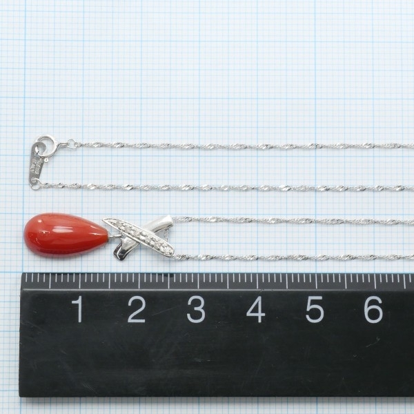 K18WG ネックレス サンゴ ダイヤ 0.15 総重量約1.8g 約40cm 中古 美品 送料無料 | |
