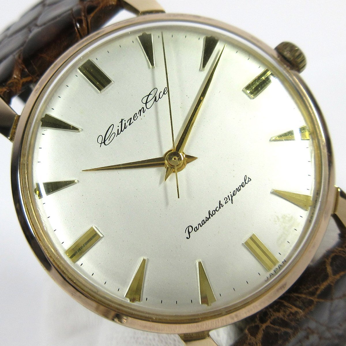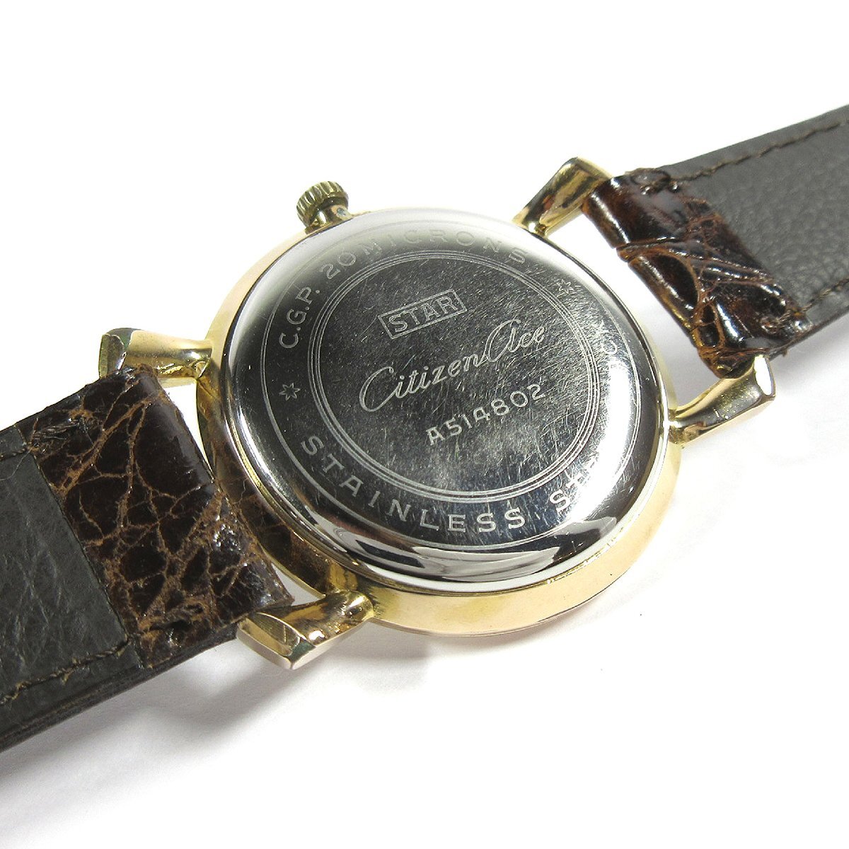 シチズン 1961年 ヴィンテージ A514802 エース 筆記体ロゴ シルバー文字盤 バー/ヤジリ 34mm メンズ 手巻 時計 GP/SS A176