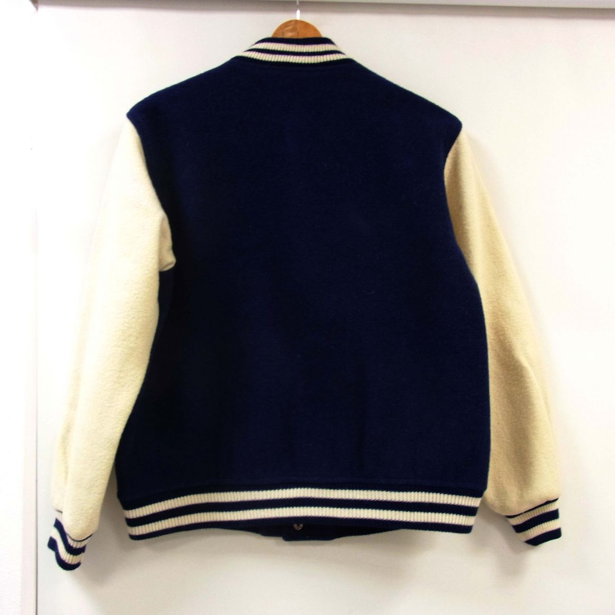 備考胸元には装飾のないシンプルなデザインながら、濃紺ボディ×オフホワイト袖の王道カラーリングが映える一着。