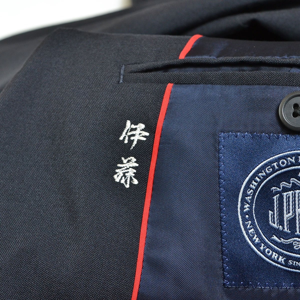 裏地にネーム刺繍、脇下裏地にややスレ、その他ランク相応の着用感あり。