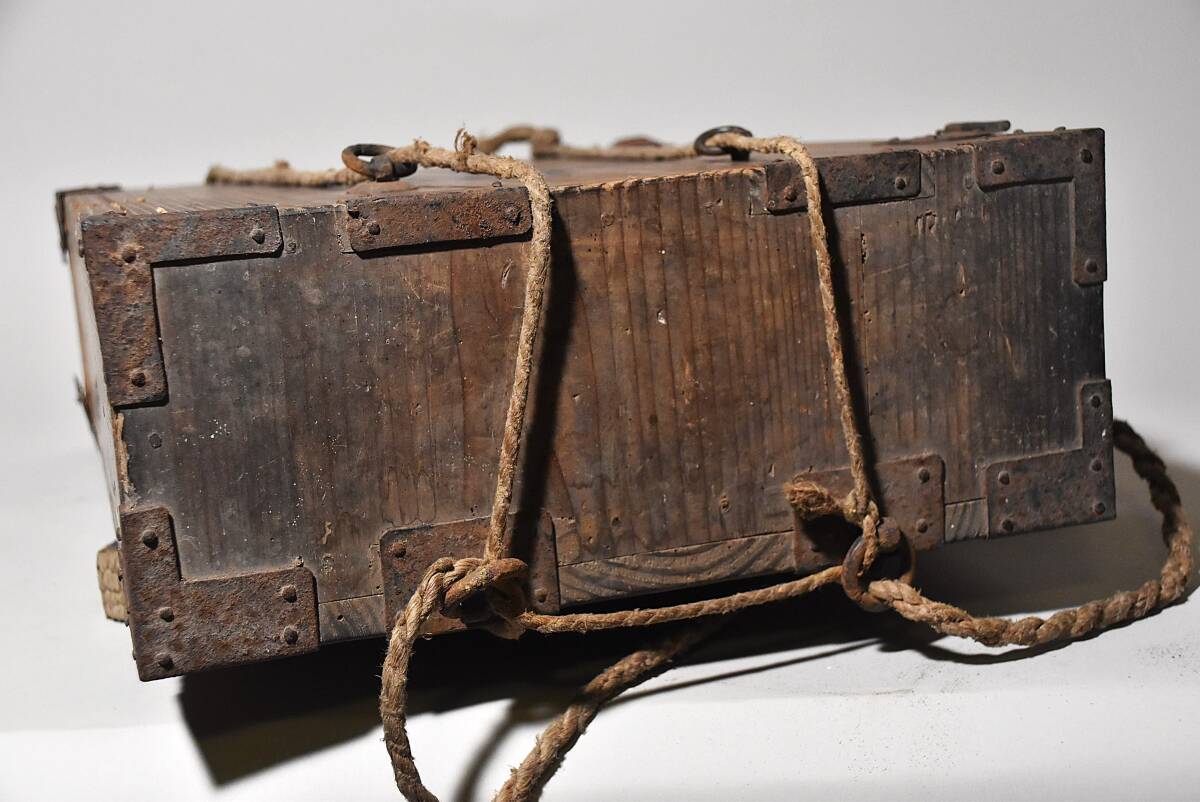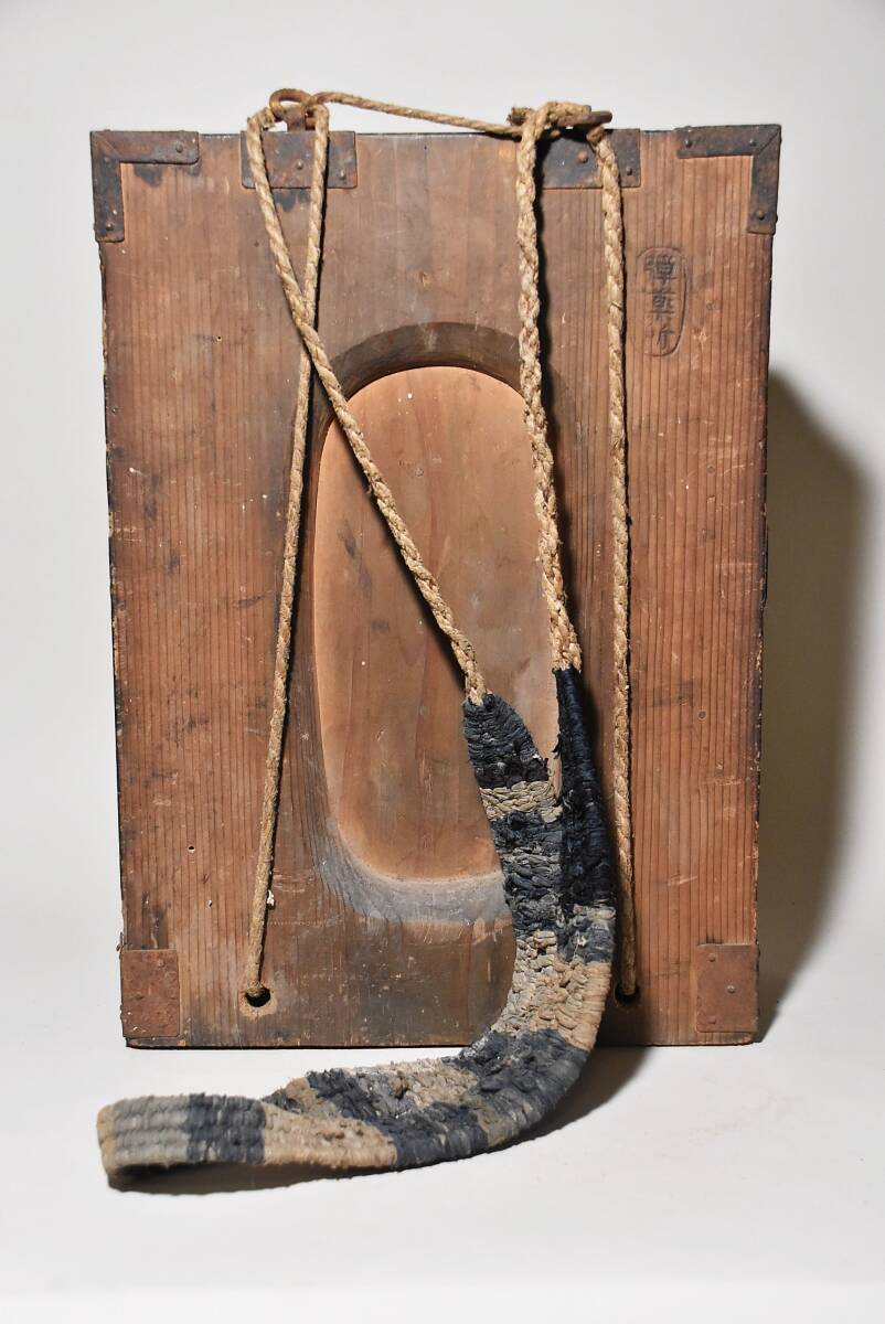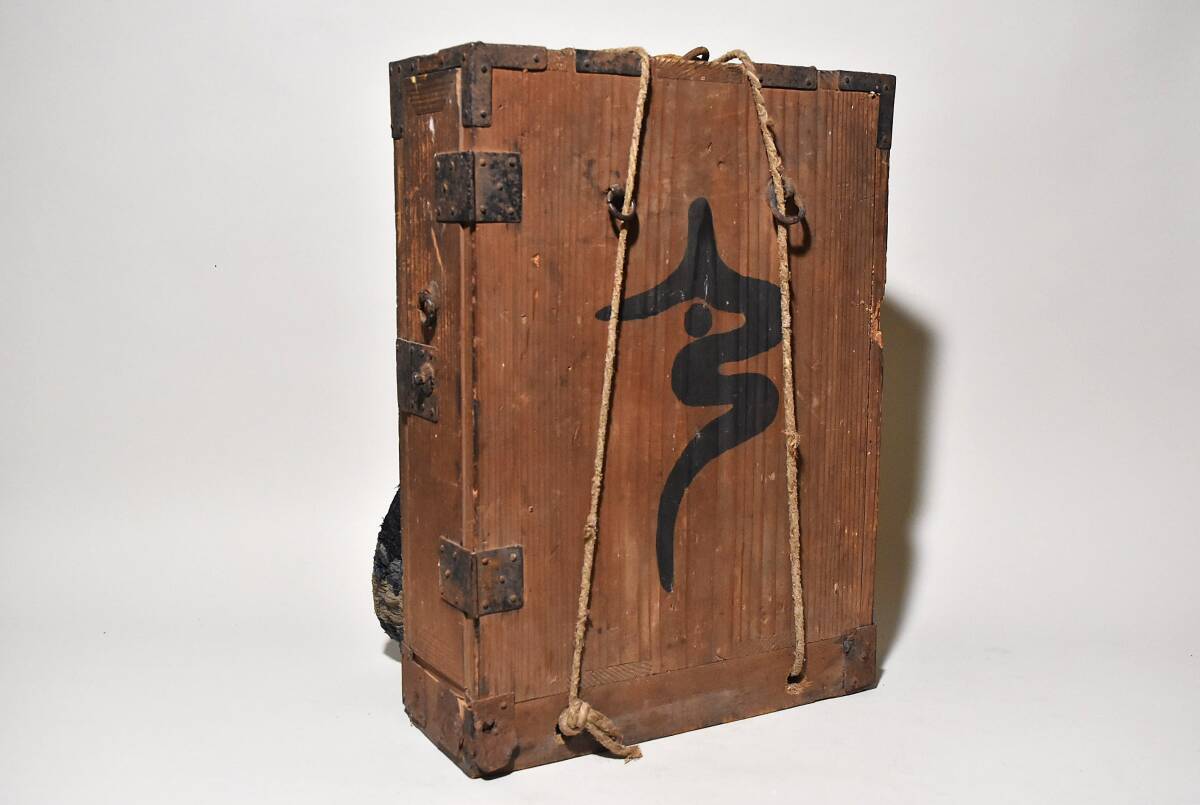 商品説明 | 「太政官弾薬所用背負子(明治時代)」です。 『弾薬所』の焼印があり、調べましたら 太政官(明治政府)で使われた、背負子と判りました。 背に大きき書かれた墨記号にも意味があるのでしょうが 知識がなく詳細は不明です。 幾分のヤツレはありますが、当初の姿を良くとどめています。 どうか、よろしくお願いいたします。