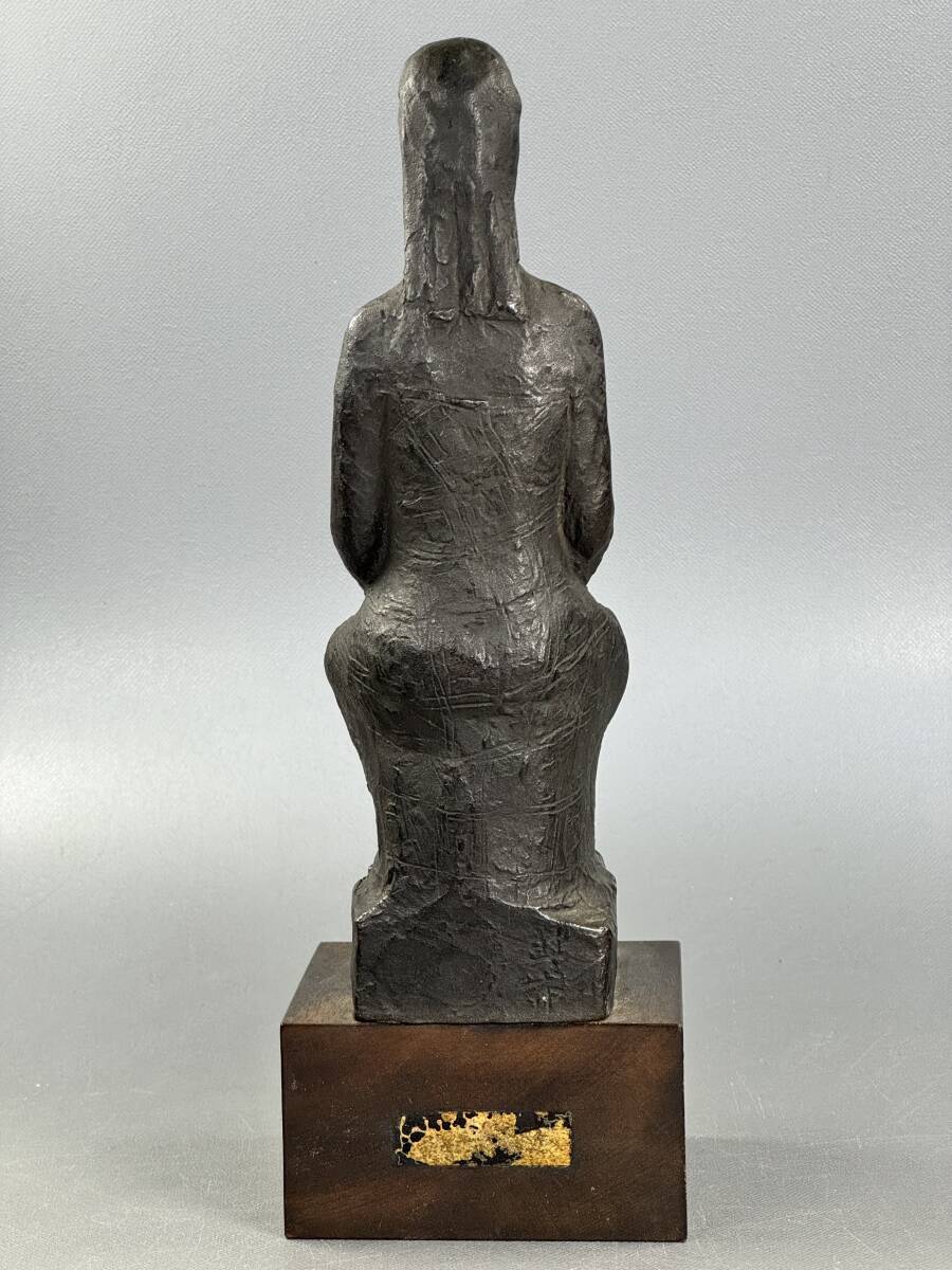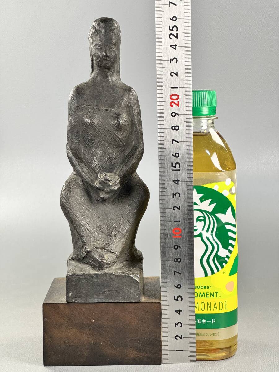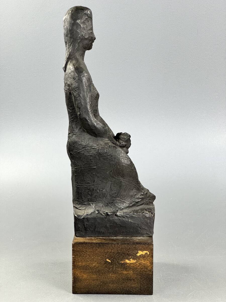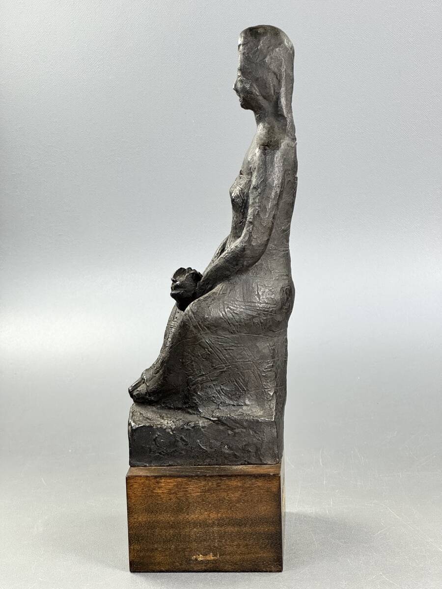 【偲】山本豊市 ブロンズ像 彫刻家 座った女性の姿 花を持つ 高さ約26.5㌢ 胴銘 金属工芸 銅像 インテリア 置物 r-142
