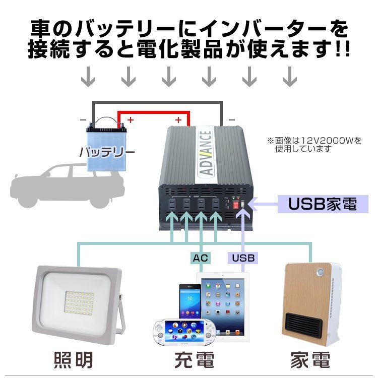 ADVANCE 修正波 車載 電源インバーター USBポート付 |