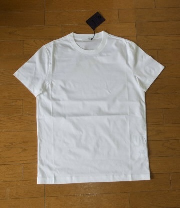 プラダのシンプルなTシャツです。プラダらしい上質なシルキーなコットンと上質な襟元のリブが高級感があってとてもオススメです。今からの時期1枚できても、ジャケットやカーディガンのインナーに着てもいいデザインです。