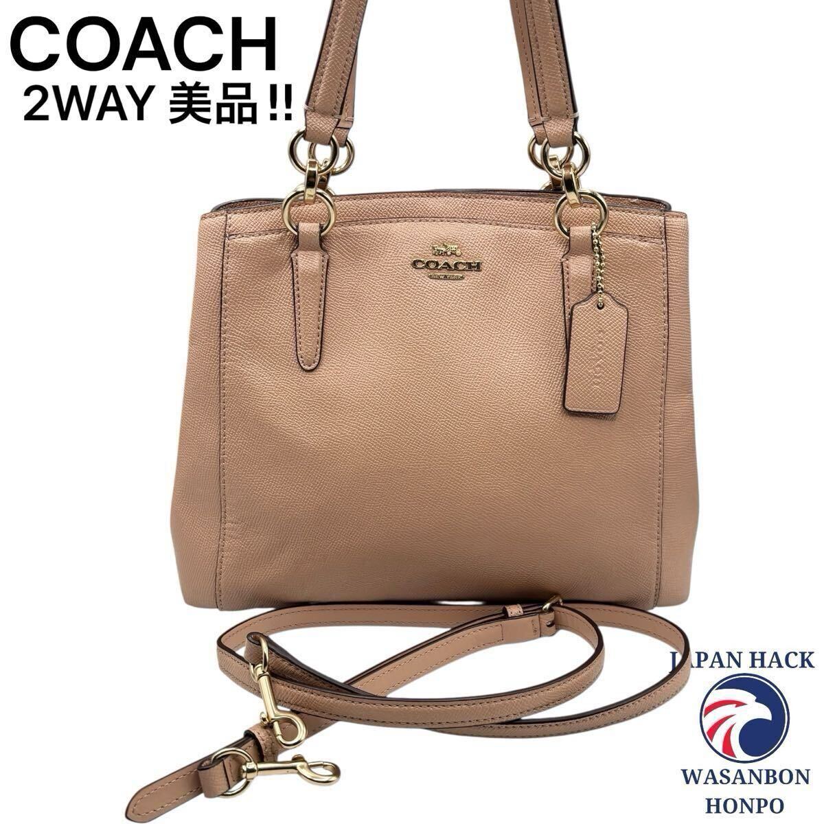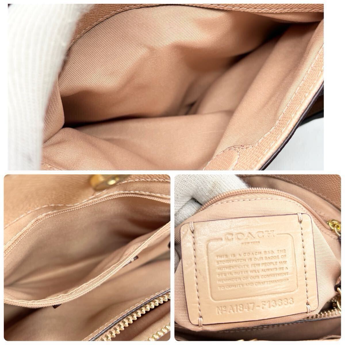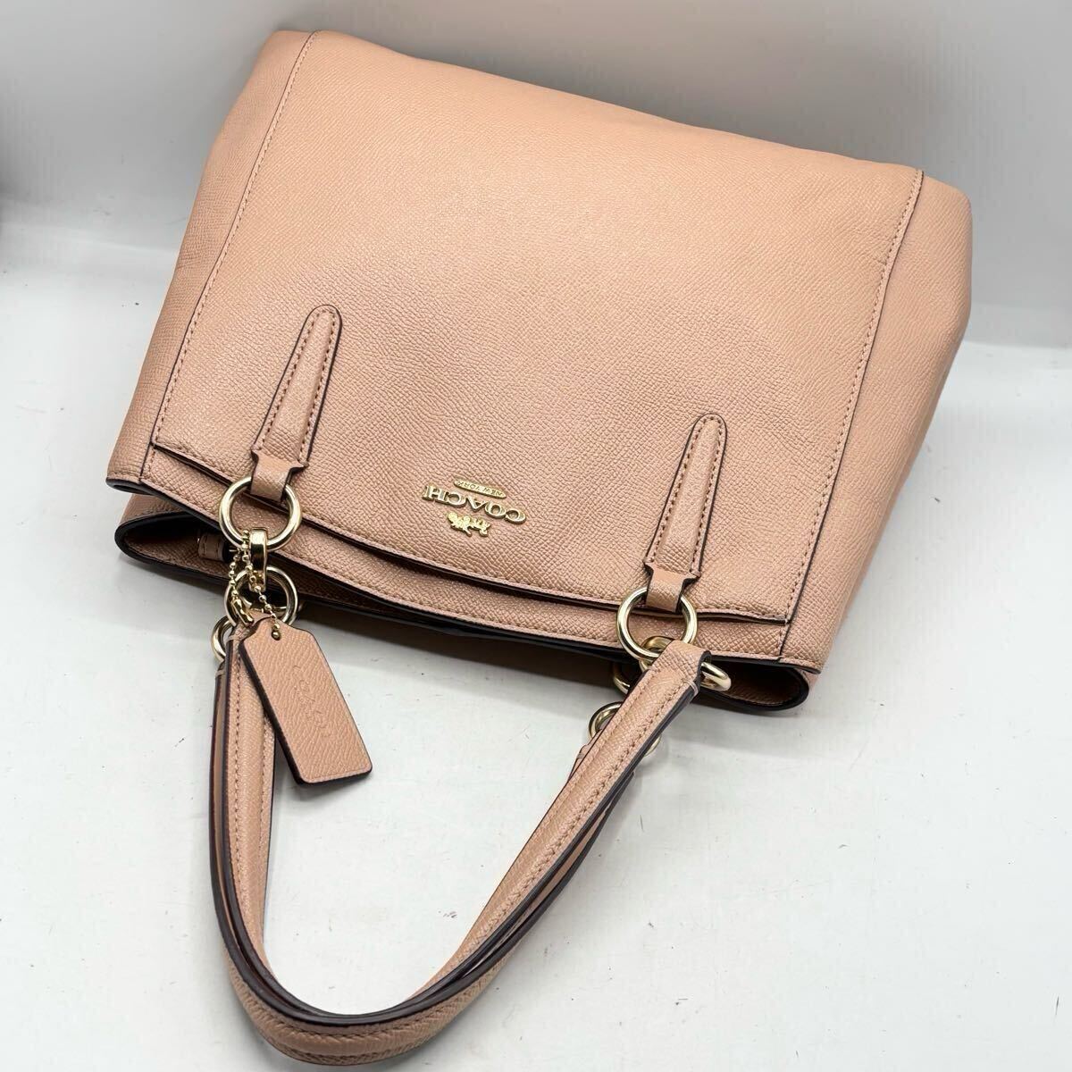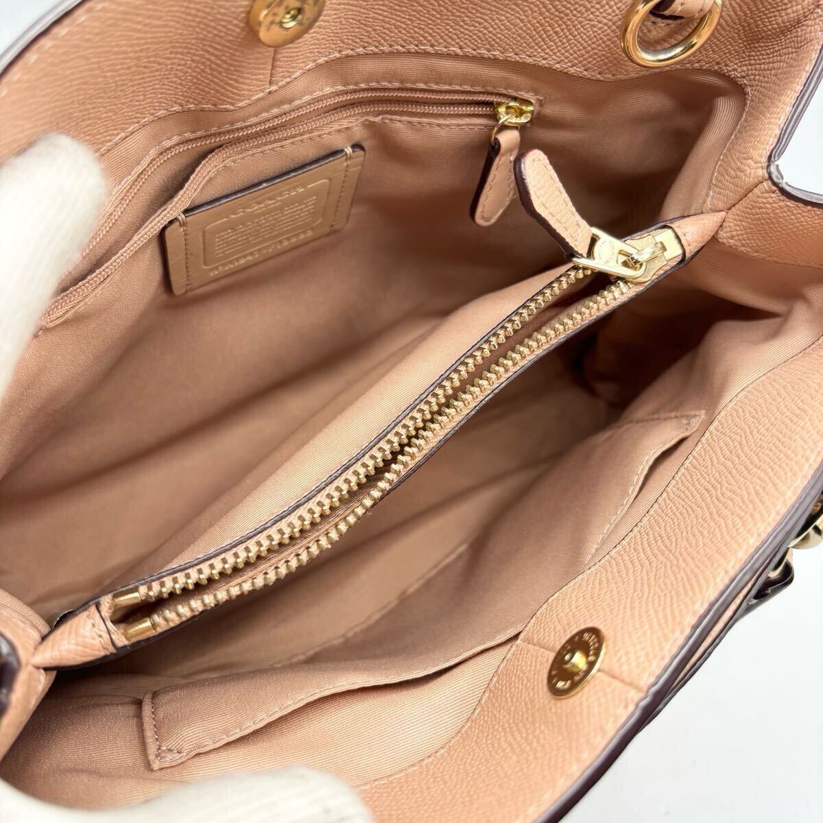 ¥1~ COACH 美品 2WAY ハンド ショルダー バッグ F13683 ピンク×ゴールドメタル ロゴ ストラップ ブランド レディース