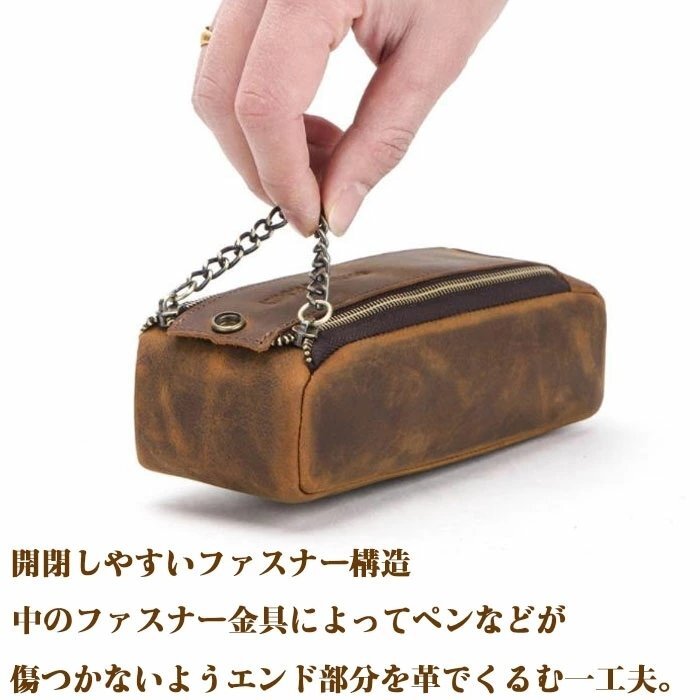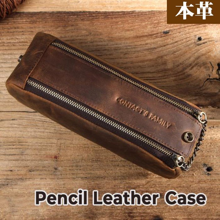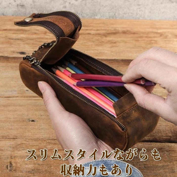 ペンケース 本革 大容量筆箱 シンプル 大人から 高校生 大学生にも人気 レザー プレゼント ギフト 就職 贈り物 男女兼用 コーヒー