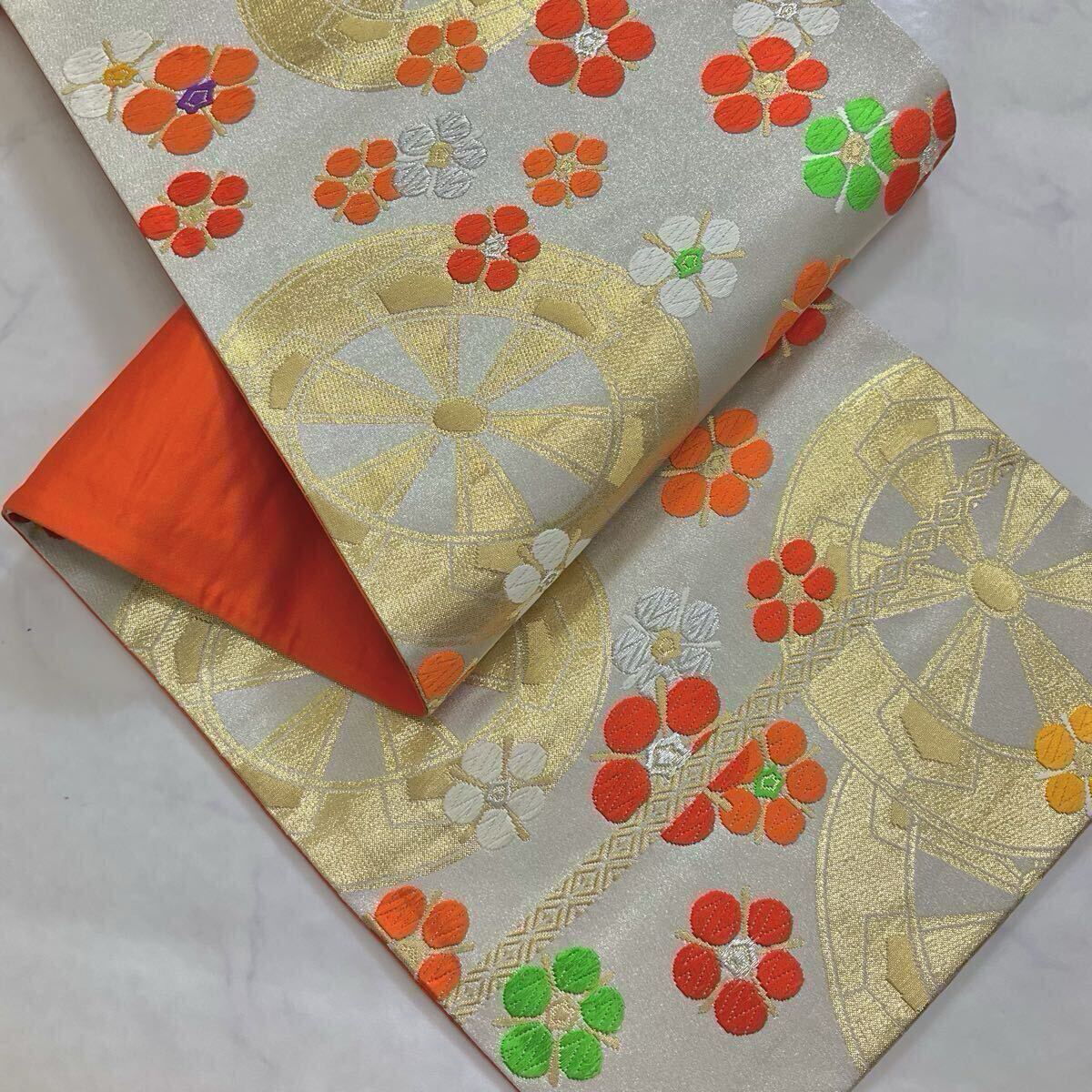 ◆kimono+one◆子ども帯◆子供帯◆美品◆最高級西陣織正絹◆金糸◆七五三◆391cm◆七五三お詣り女の子着物こどものひお正月卒業式Y109