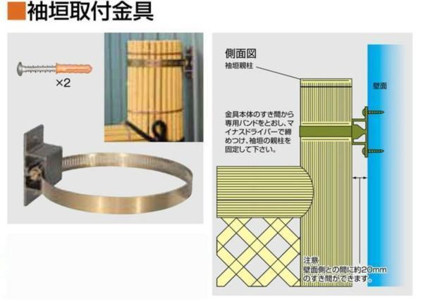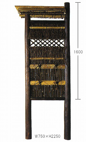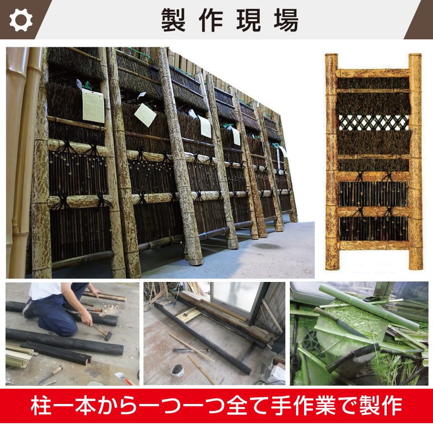 | 商品詳細 | この度は数ある商品の中から当商品を閲覧頂きまして有難う御座います。 商品定価 189,090円 ⇒ 販売価格 107,800円(送料・税込み) 丸太垣は支え柱に黒丸太を使用し、重厚感のある袖垣です。 屋根付垣は、屋根を取り外すと「丸太黒穂垣B(腰半割)」になりますので、 また違った雰囲気が楽しめる袖垣です。 造作高は1600mmで、埋め込んで施工して頂くことも可能ですし、足元の空間を活かして そのままの高さで取り付ける事も可能です。 商品名:丸太屋根付垣(屋根取外可) サイズ:幅 900mm×高さ 2250mm(造作部 高さ1600mm) 材質:国産天然竹、黒丸太 幅は柱の外々の寸法、高さは支え柱の天辺から長さになります。 屋根は柱から5cmほど出ています。 この他のサイズ(W600XH2250、W700XH2250、W750XH2250)や 特注サイズもご注文可能です。 お気軽に質問欄よりお問い合わせ下さい。 取り付け方は建物や柱に針金などで固定して頂くだけで可能です。 オプションで取り付けに便利な袖垣固定金具も御座います。 |