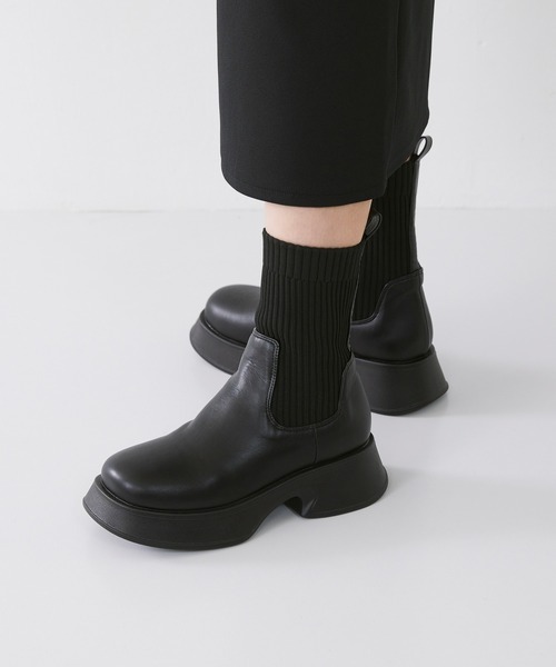 キーワード:ブーツ レディース ショート ヒール 厚底 紐なし 秋 冬