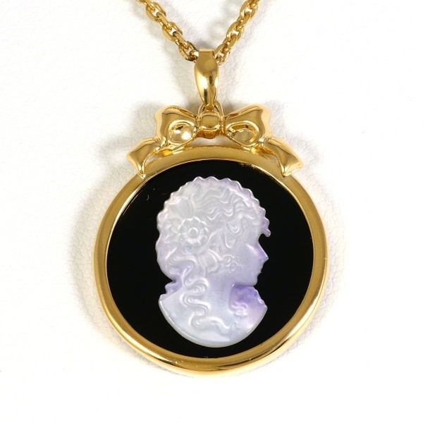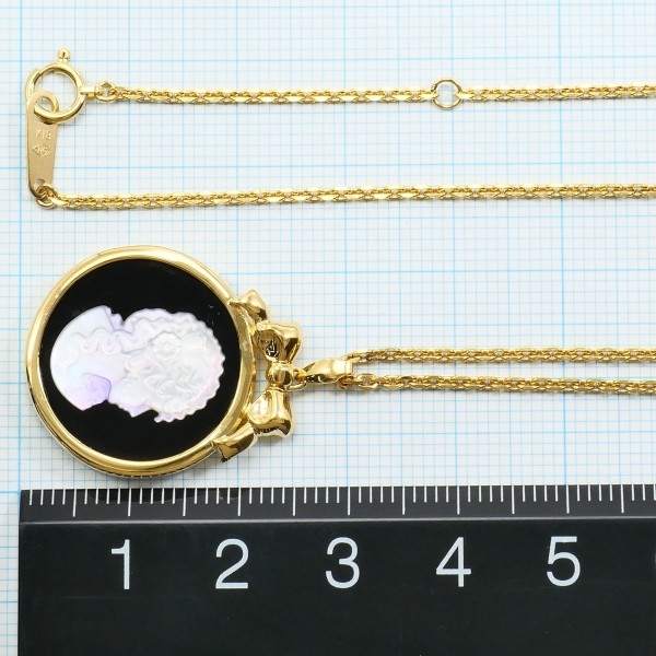 K18YG ネックレス シェル オニキス カード鑑別書 総重量約8.6g 約40cm 中古 美品 送料無料 | |