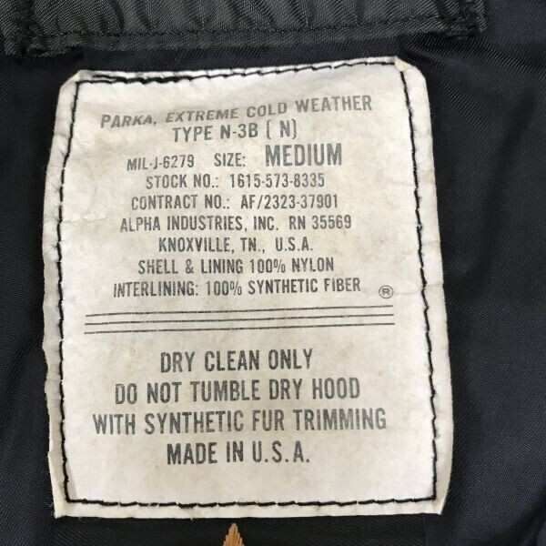 アルファ・インダストリーズ【メンズM】USA製 N-3B/モッズコート 1615-573-8335 フライト 黒◆QBC336