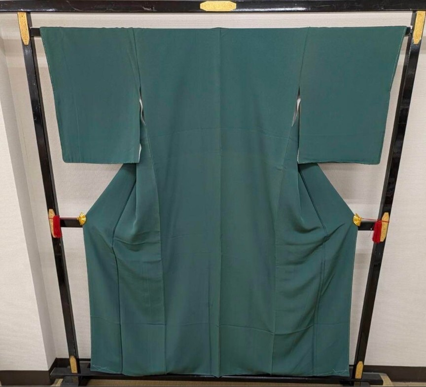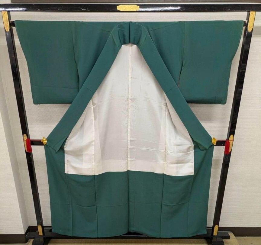 【楓】色無地 正絹 紋無し 縮緬 共八掛 広衿 袷 着物 KU-2394