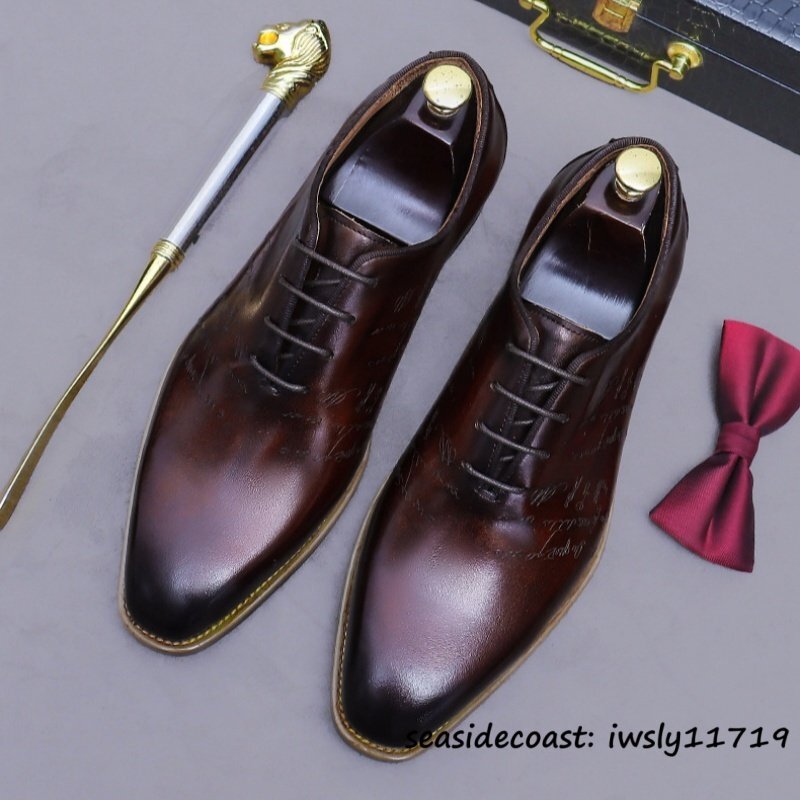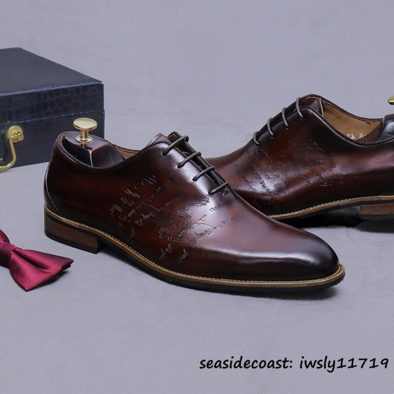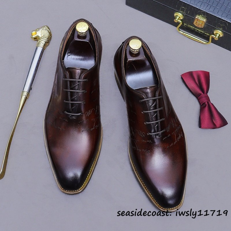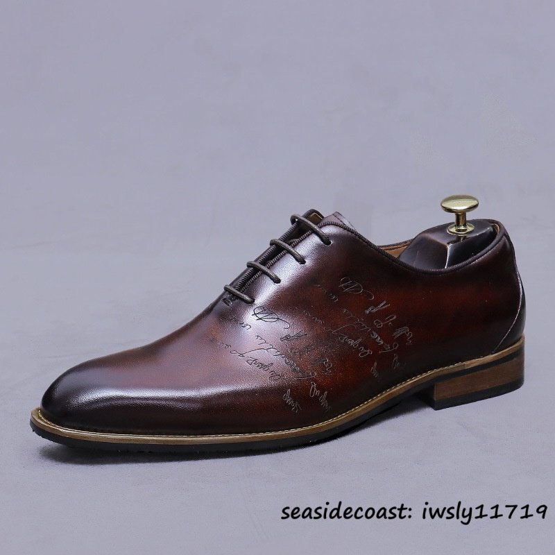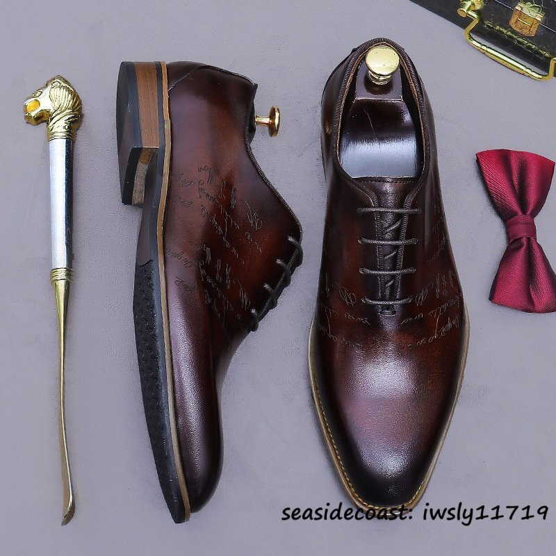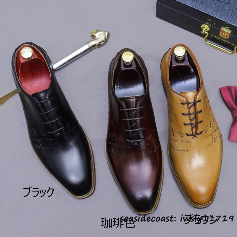 最高級★定価9万 レザーシューズ 新品 ビジネスシューズ 本革 メンズ 職人手塗仕上げ 超希少 彫り 紳士靴 牛革革靴 結婚式 珈琲色 27.5cm