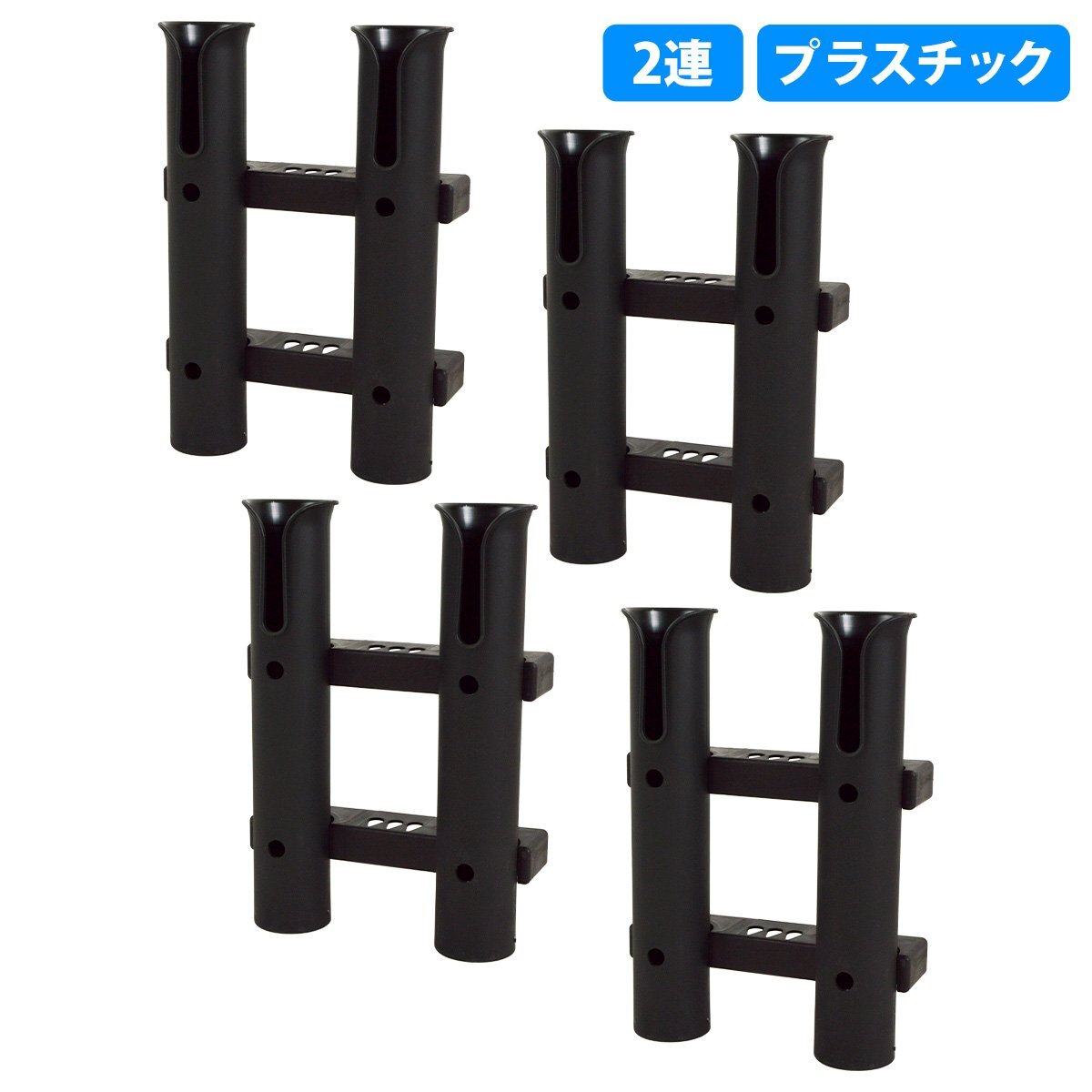 [2連 4個セット] ロッド ホルダー 竿 立て 置き 入れ 釣り フィッシング スタンド ネジ付 固定 船 漁船 ボート 黒 ブラック