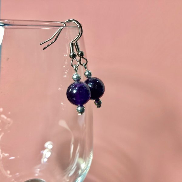 こちらは、10mm玉のアメジストを使用した一粒フックピアスです。シンプルなデザインはシーン問わず、どんなコーディネートにも合わせ易く使い勝手がいいアイテムです。今回は一粒ピアスの要望が多かった為制作しました。気になる方は是非この機会にどうぞ。