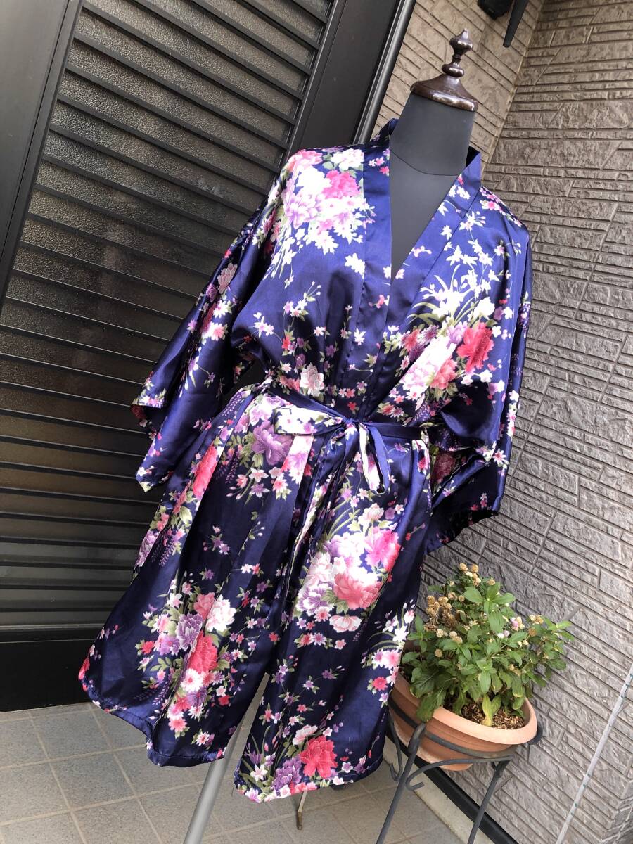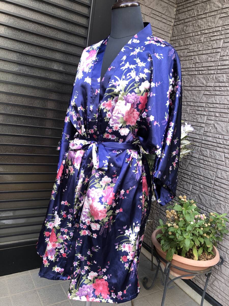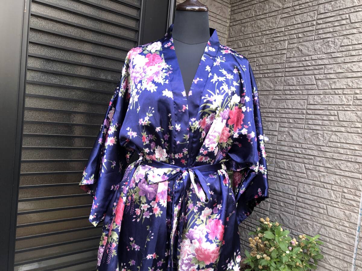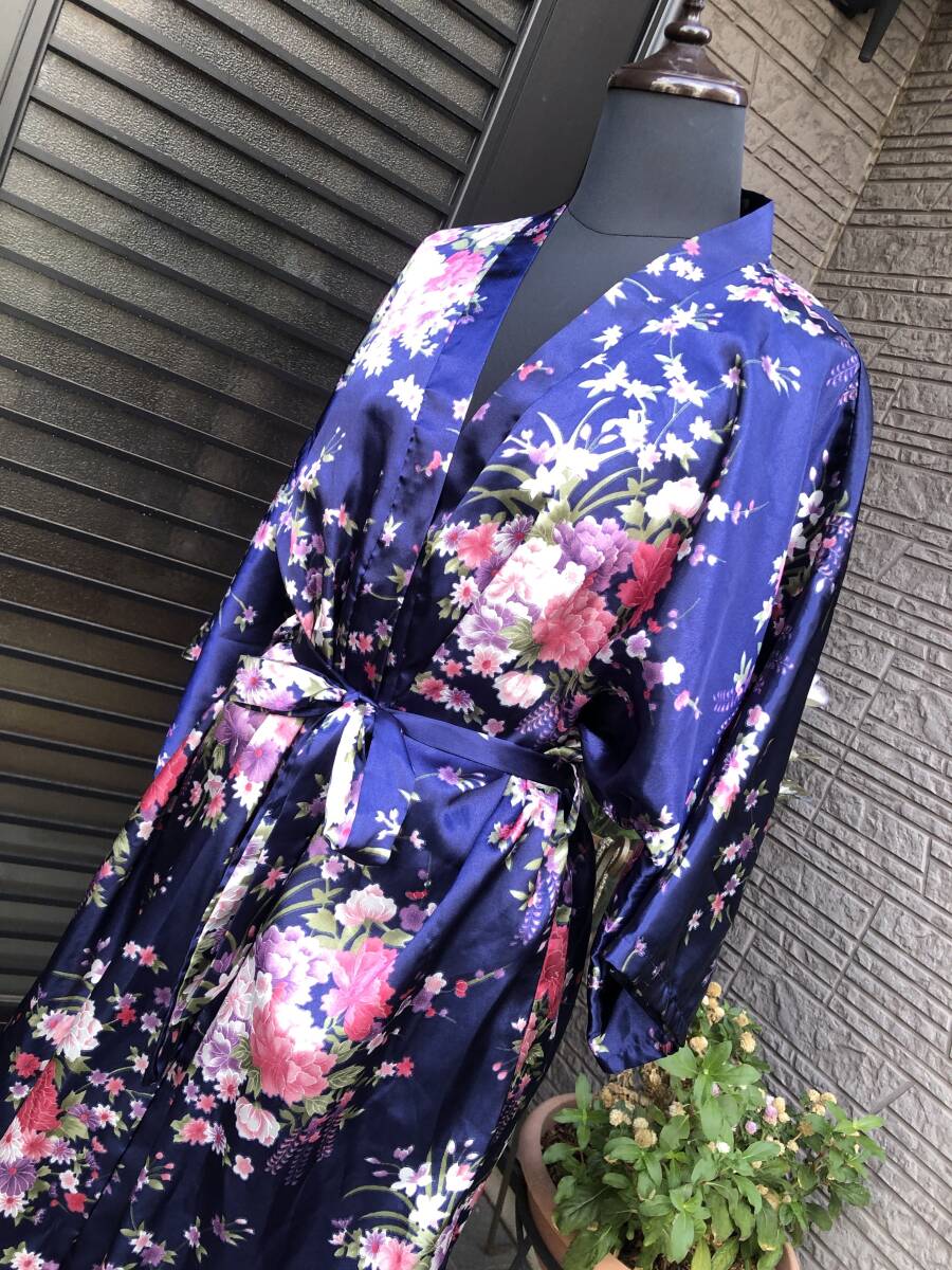 お花柄 サテン地 ガウン ナイティ ナイトウェア バスローブ M~LL 送料230円