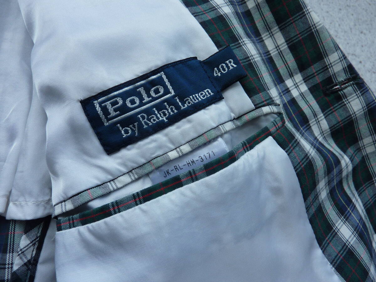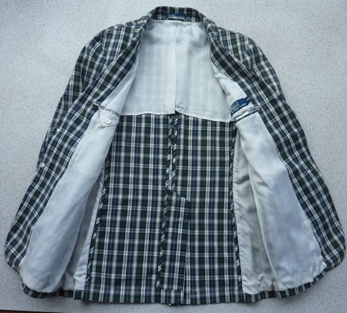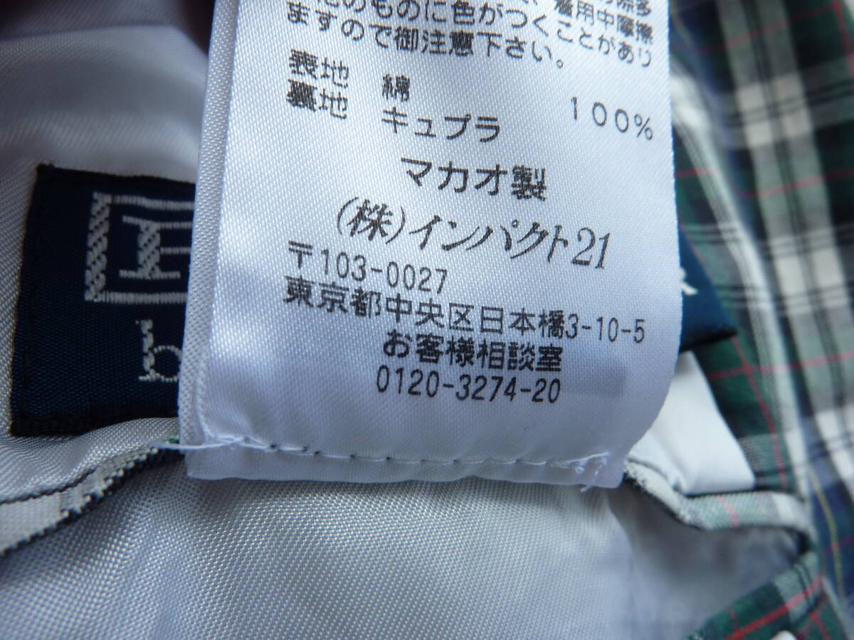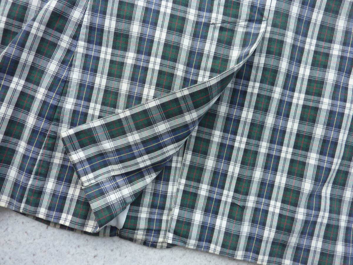 綿100%のタータンチェック生地で、3B(貝ボタン)段返り、センターベント、サイドパッチポケット、背抜きに仕立てられたジャケットです。