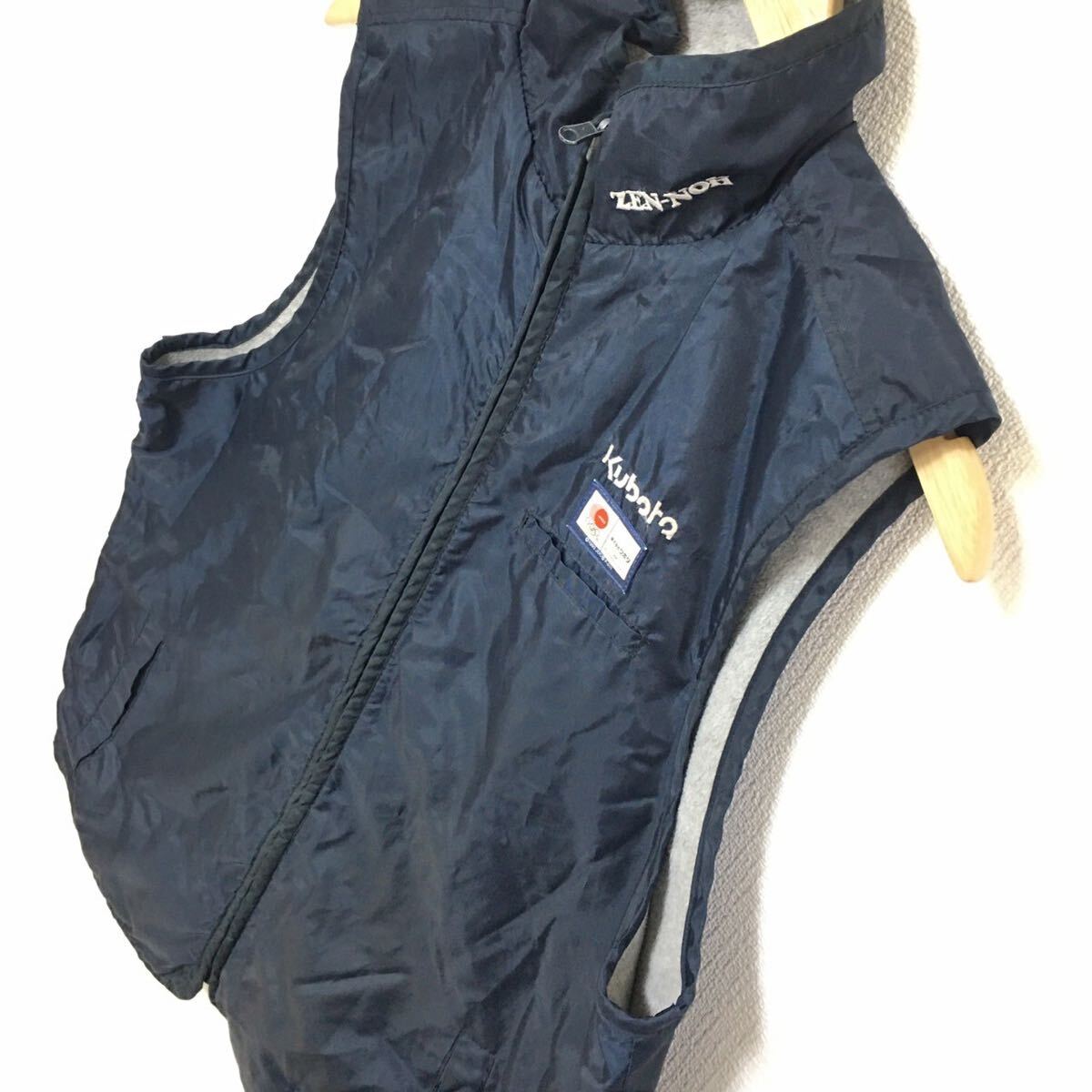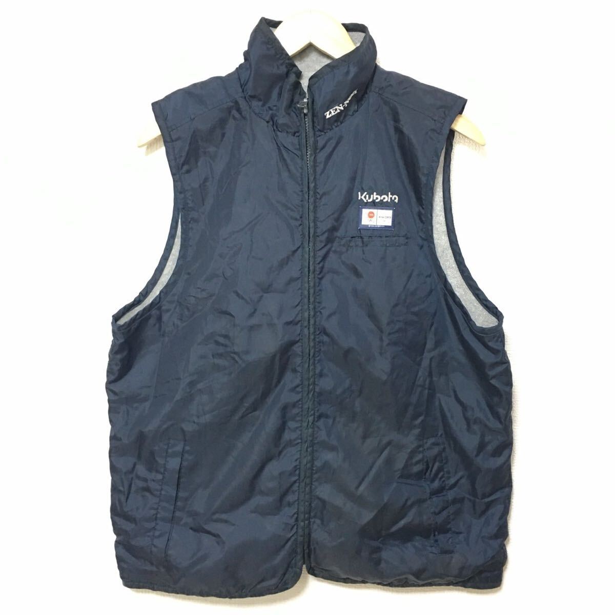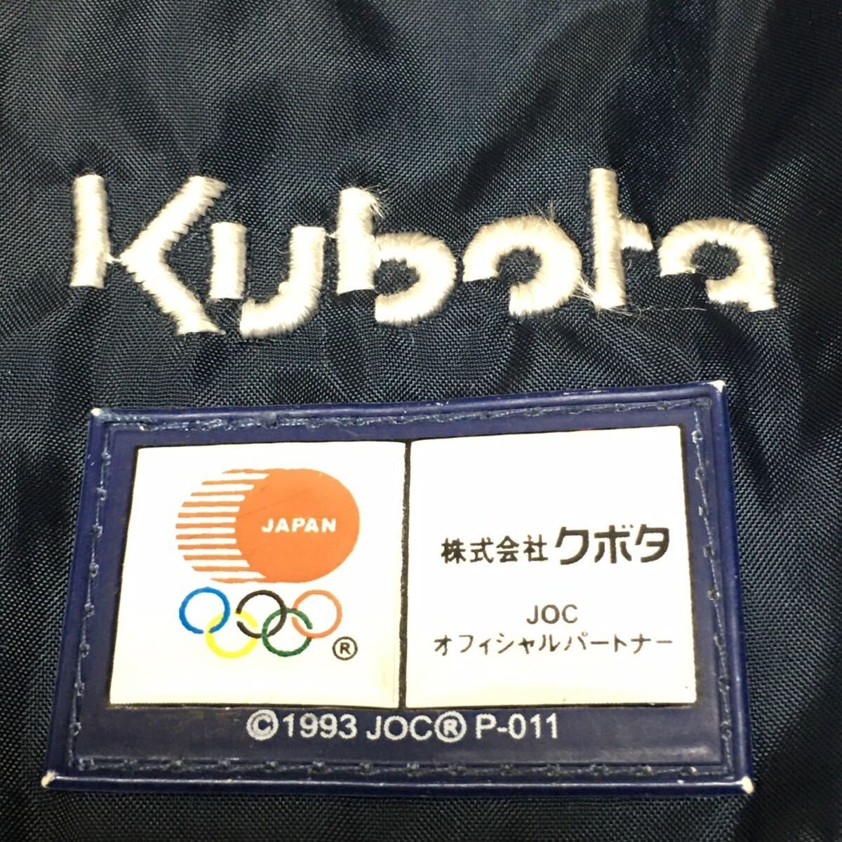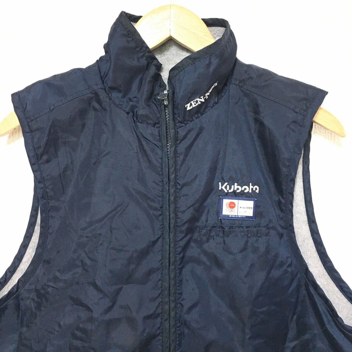 農業機械メーカーでお馴染みのKubotaのJOCオフィシャルパートナーのベストです。シンプルなナイロンジャケットで、裏地もしっかりしていて冬場の作業でも温かくおすすめなアイテムです!全体的に使用感はありますが、良い味としてお楽しみください。サイズは記載がないので採寸を参考にしてください。