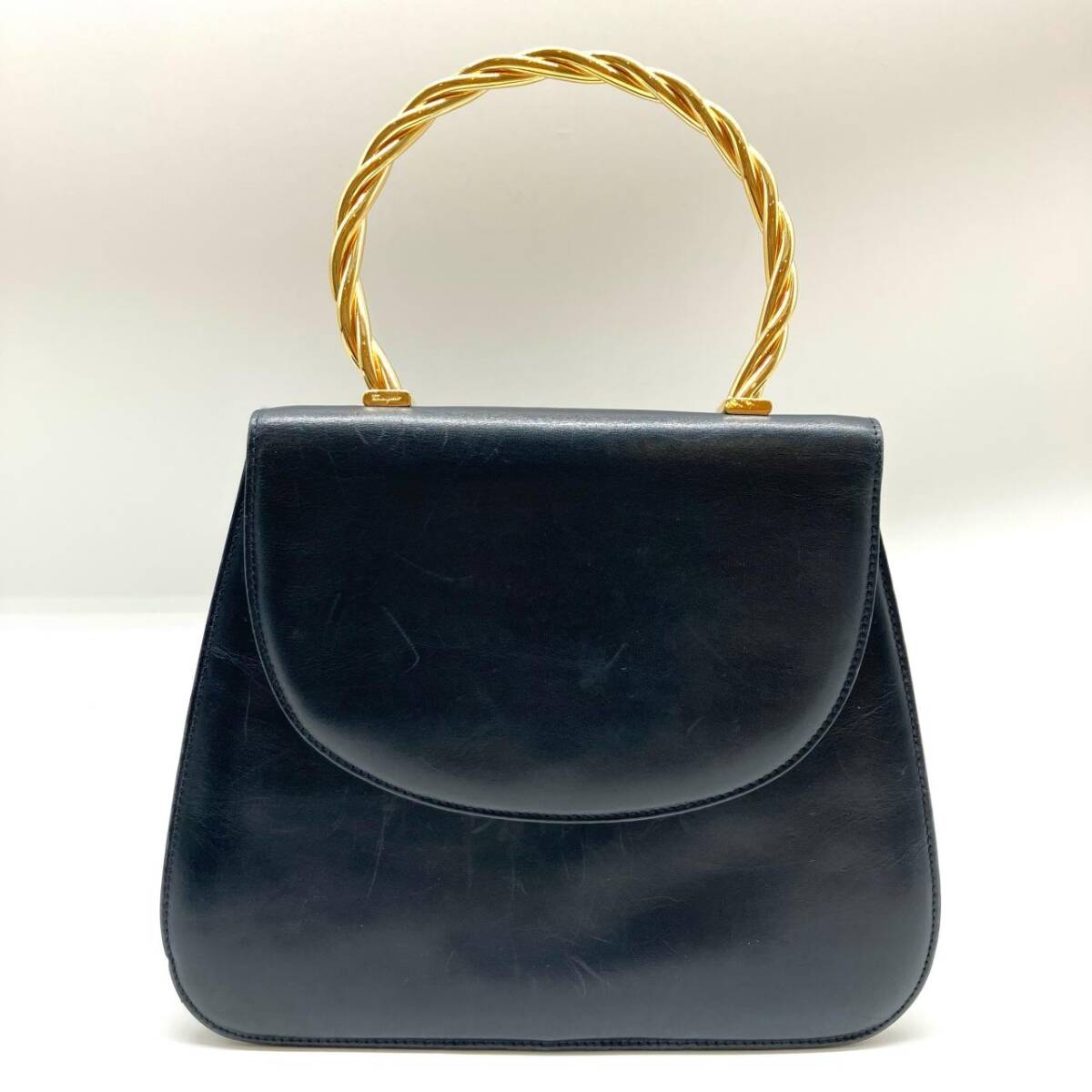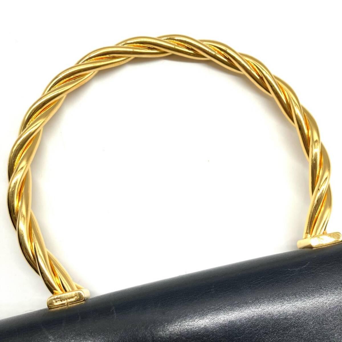 Salvatore Ferragamo フェラガモ ハンドバッグ スクリュー メタルハンドル ブラック レザー 2WAY仕様 |
