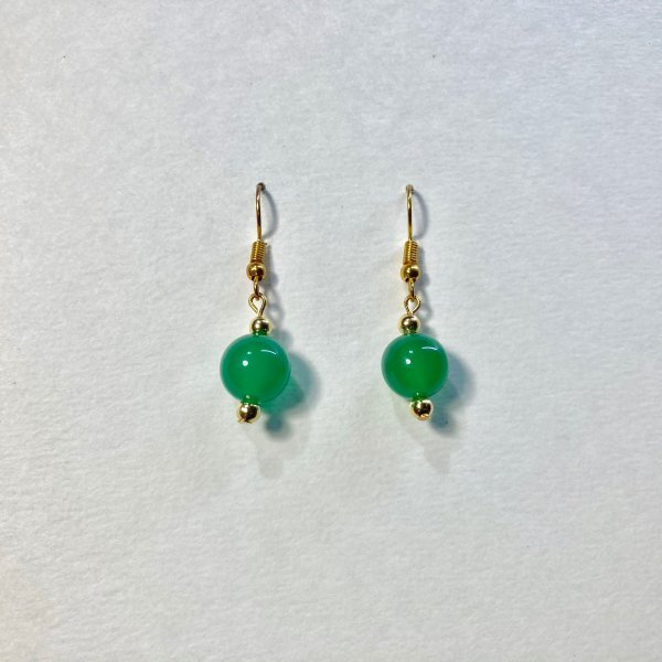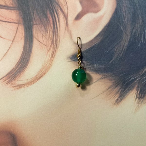 こちらは、10mm玉の緑瑪瑙を使用した一粒フックピアスです。シンプルなデザインはシーン問わず、どんなコーディネートにも合わせ易く使い勝手がいいアイテムです。今回は一粒ピアスの要望が多かった為制作しました。気になる方は是非この機会にどうぞ。