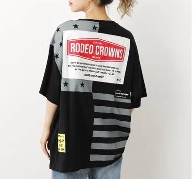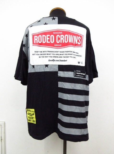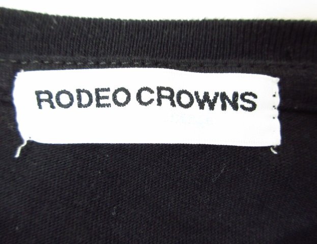 y4233 RODEO CROWNS バックUSフラッグTシャツ Fサイズ ブラック レディース ロデオクラウン