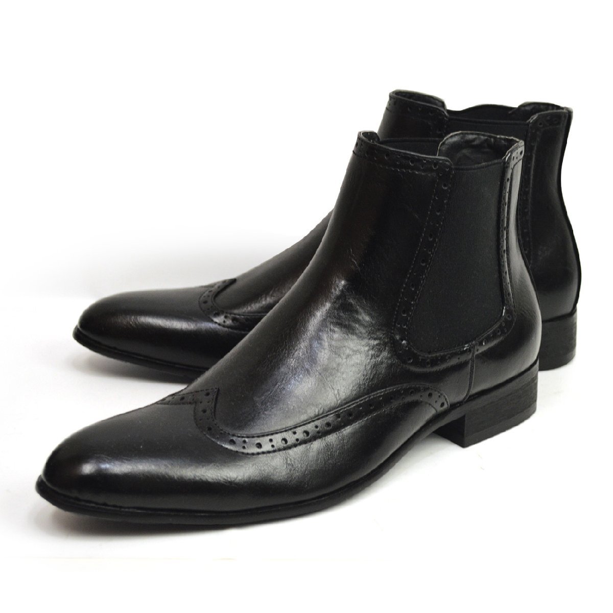サイドゴアブーツ 紳士靴 フォーマル イタリアン メンズ ブーツ ドレスシューズ 革靴 ビジネス ウイングチップ Zeeno 男 靴 ze1999