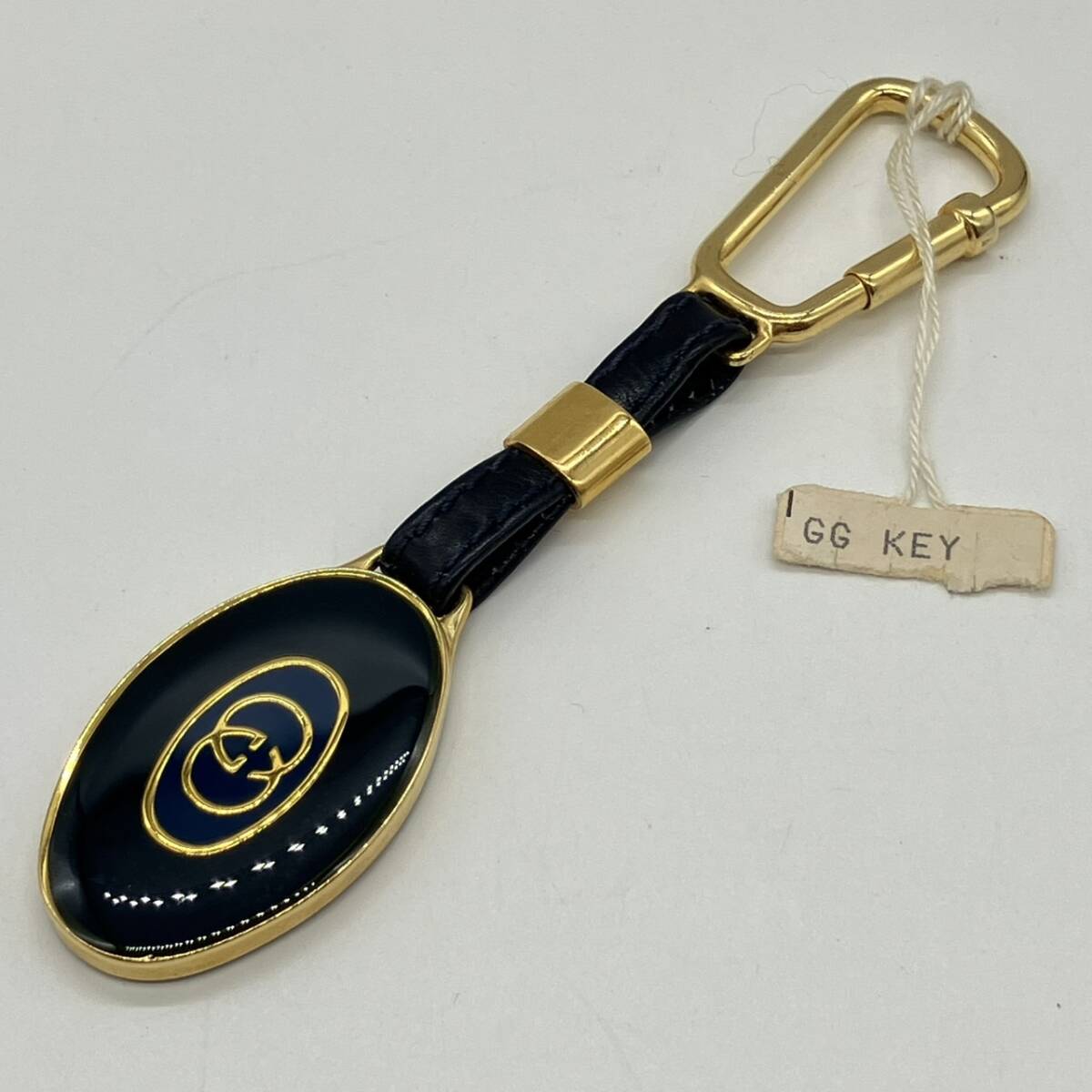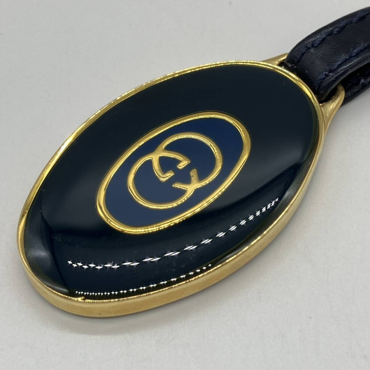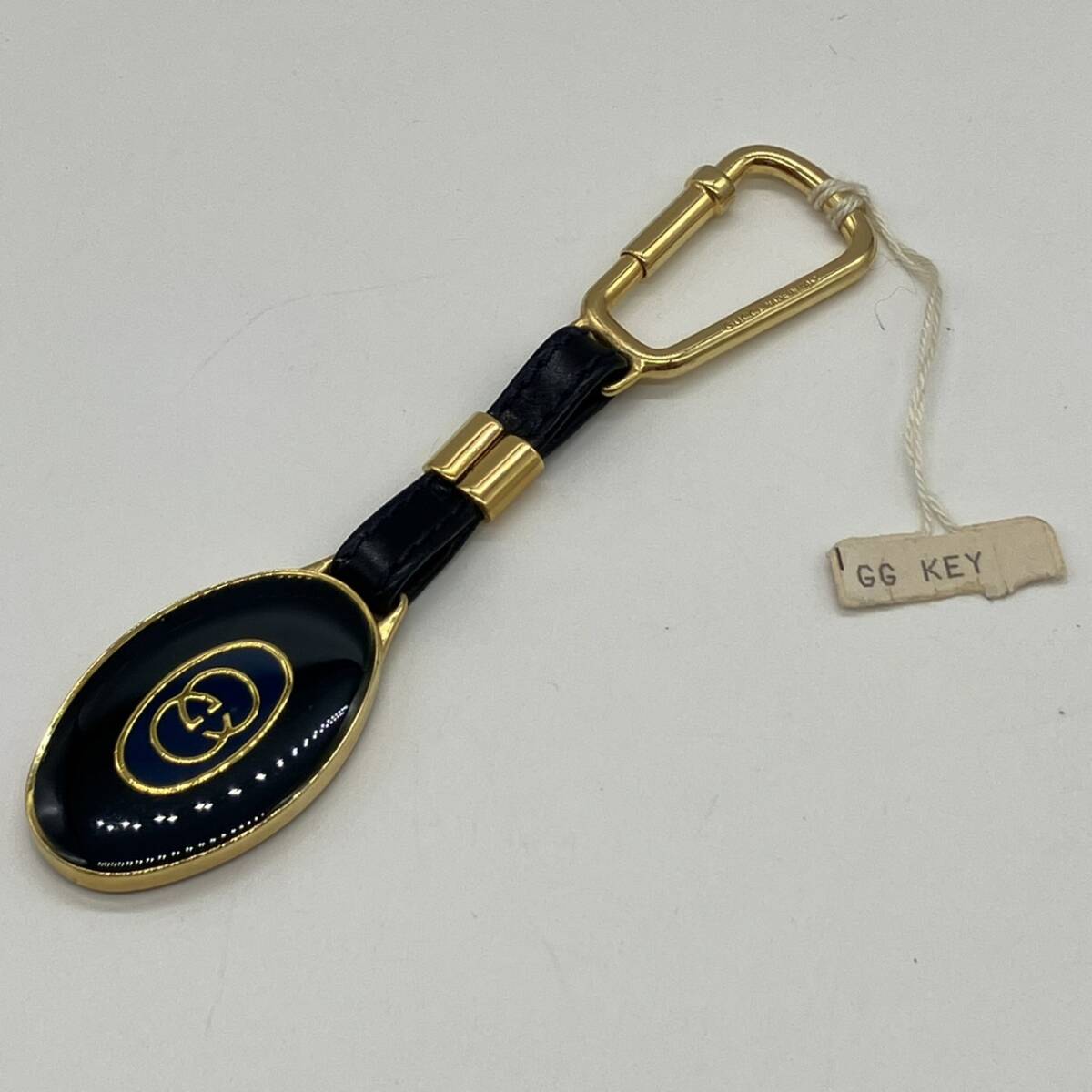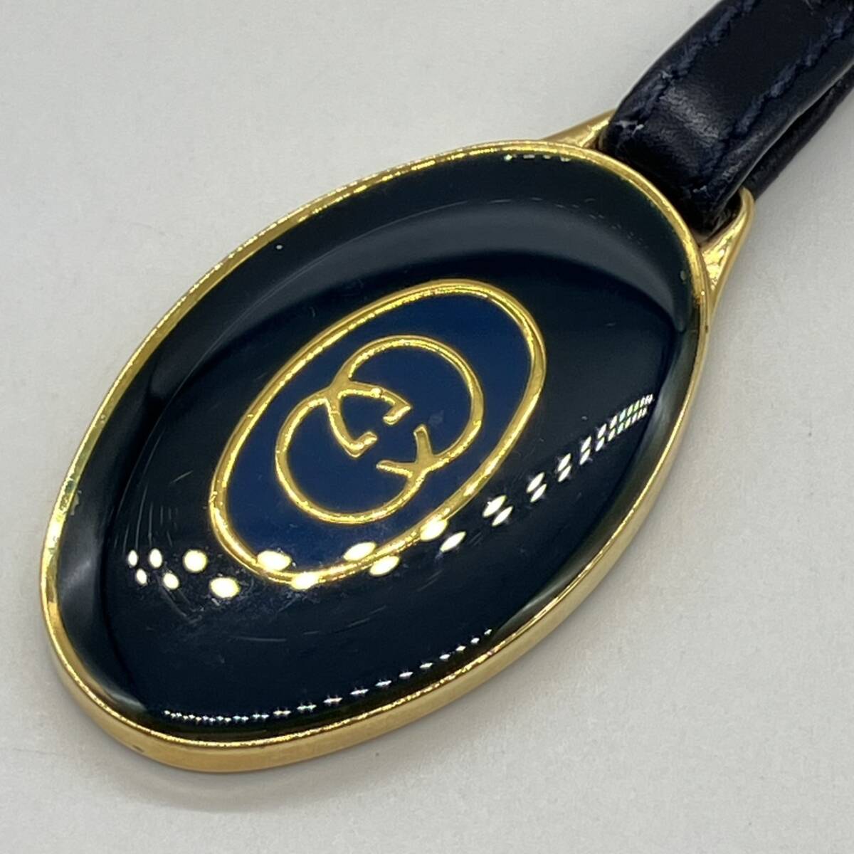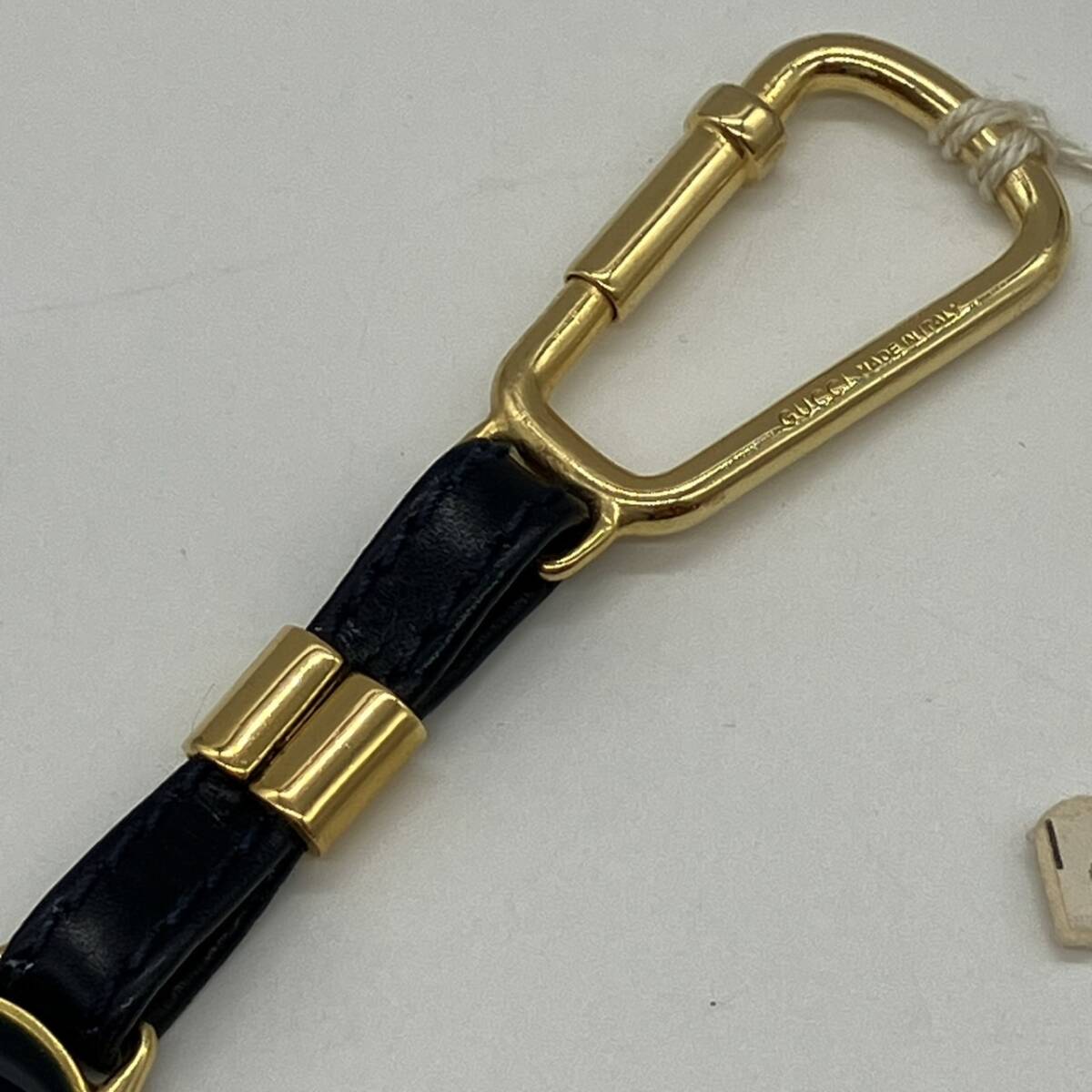 GUCCI グッチ インターロッキングG レザー キーホルダー ストラップ バッグチャーム メンズ レディース ブラック×ゴールド金具 |