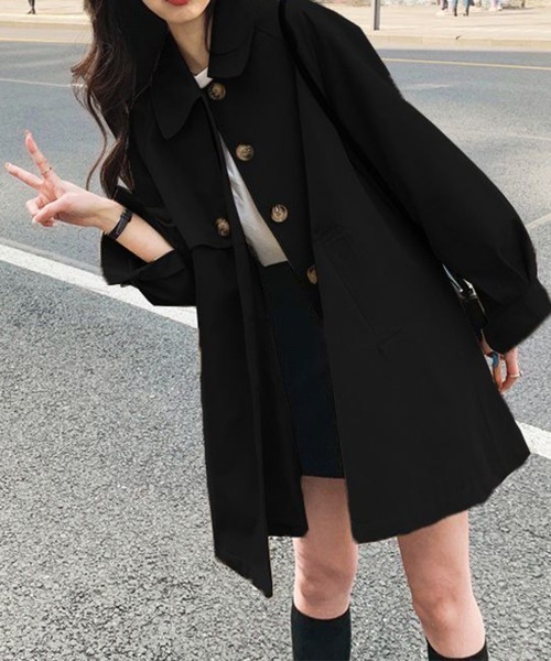 キーワード:トレンチコート コート レディース ロング丈 無地 秋 冬