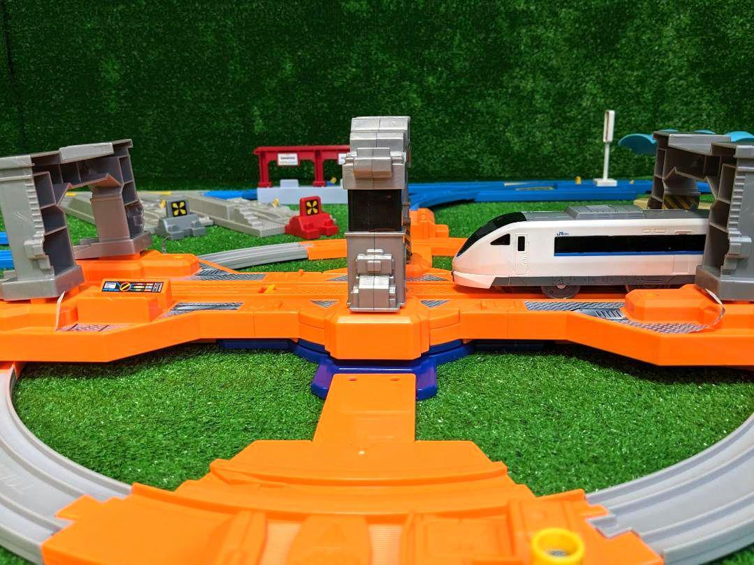 ・プラレール『ぐるぐる回る!ビッグ転車台基地』を使ったレイアウトセットです。