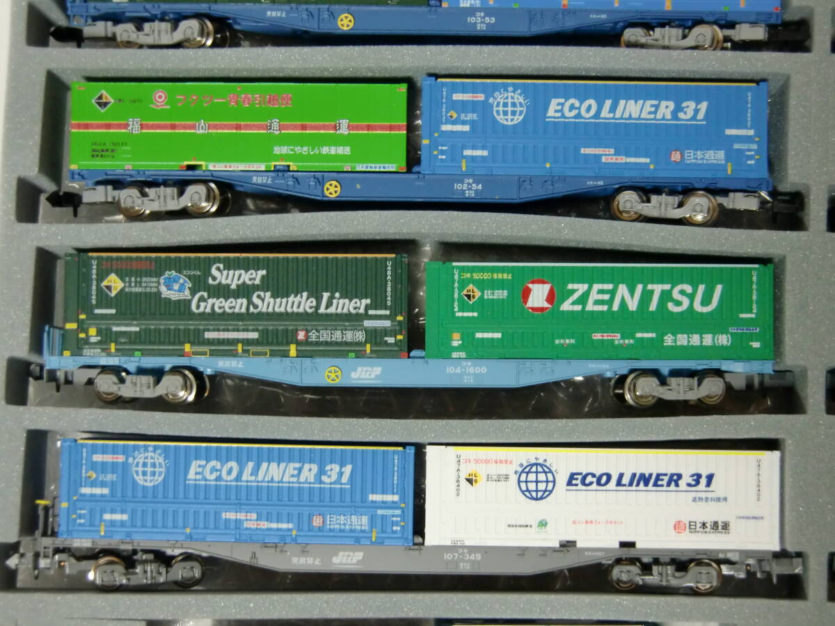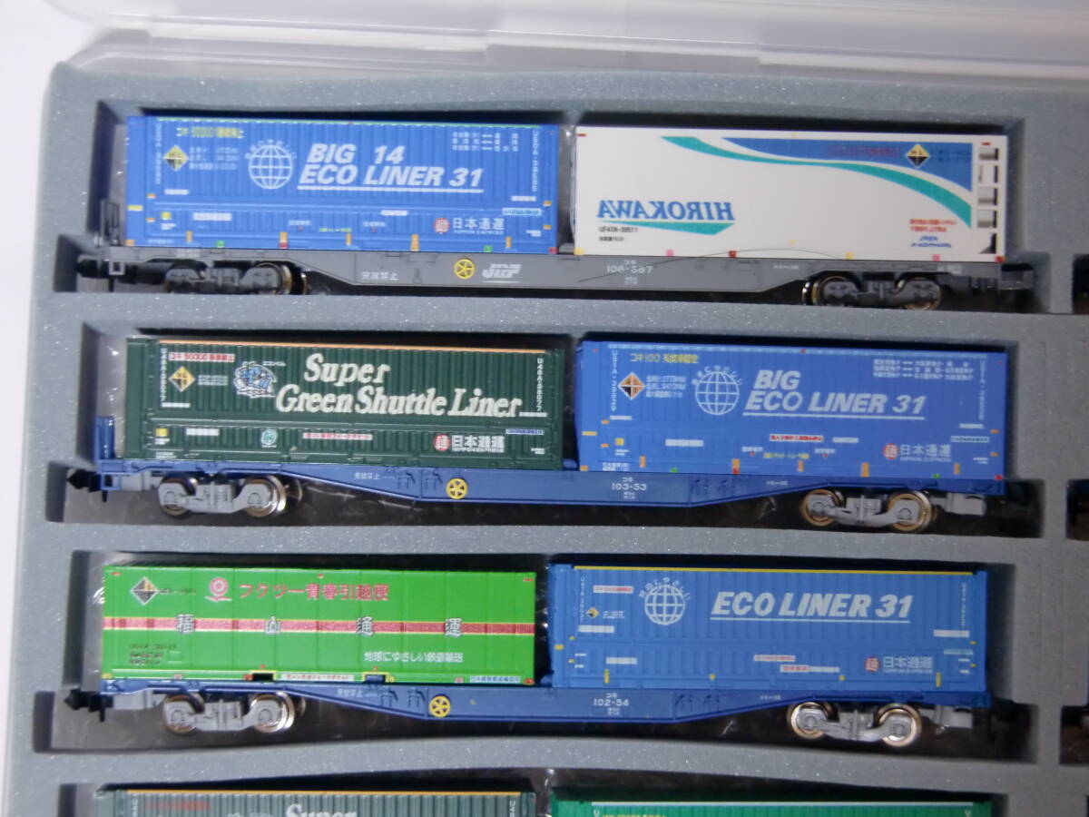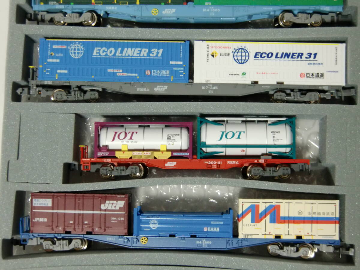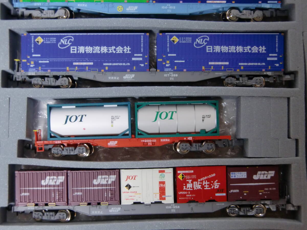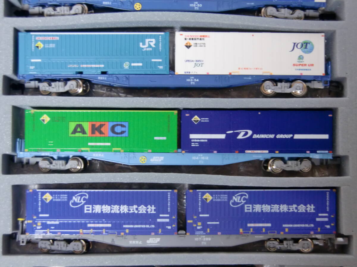 車両はTOMIX・KATO コキ102/103ユニット・104・106・107・200が計14両で、