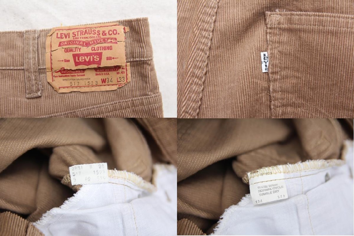 80s 70s VINTAGE ヴィンテージ USED 古着 Levis リーバイス Corduroy Pants 517 Bootscut ブーツカット Brown W33 USA製 コーデュロイ