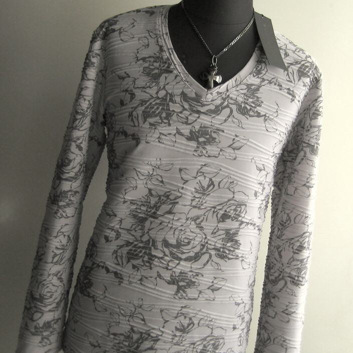 1.3万 新品 L トルネードマート ウェーブタックジャカードフラワープリントカットソー長袖 グレー サンプル 554